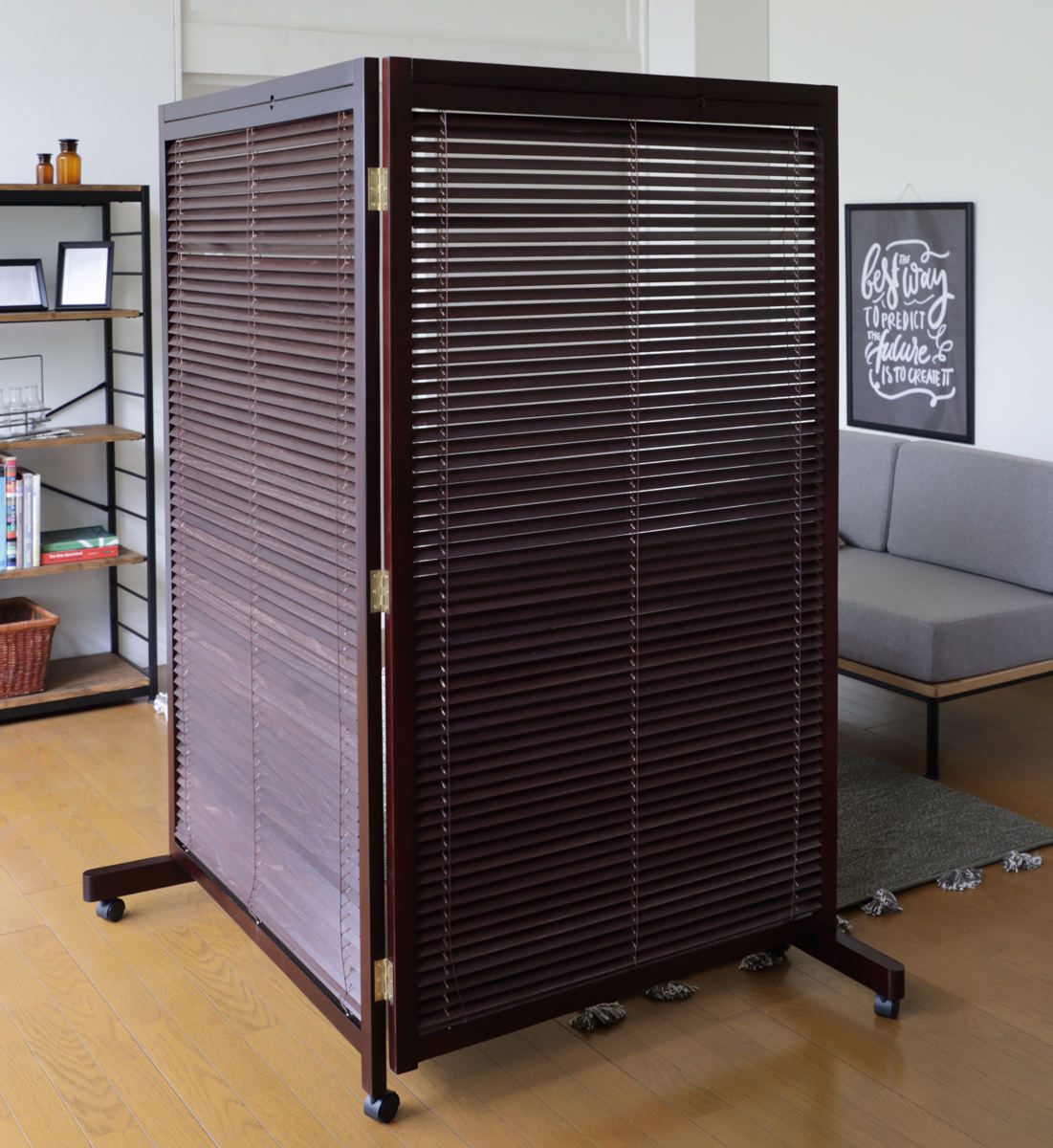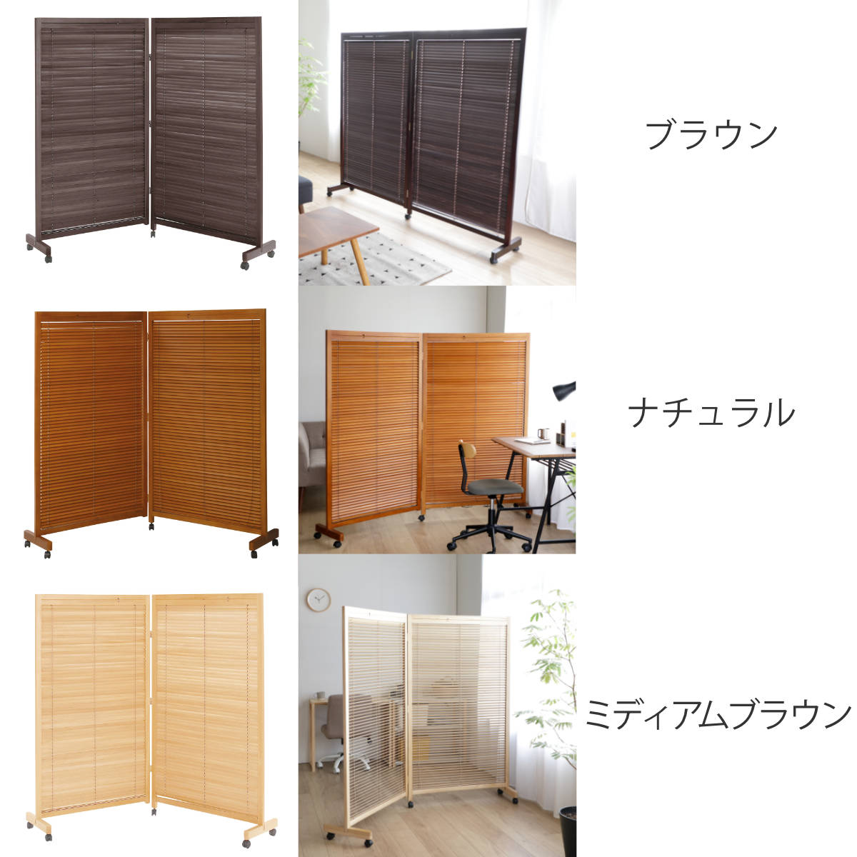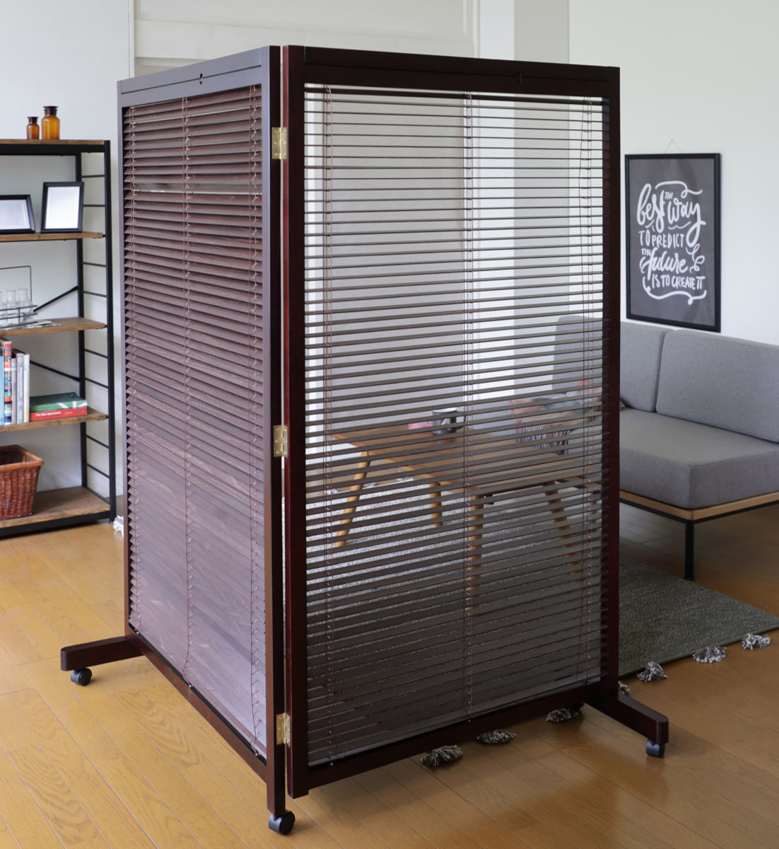 ブラインドのように簡単に開閉できるルーバータイプの衝立