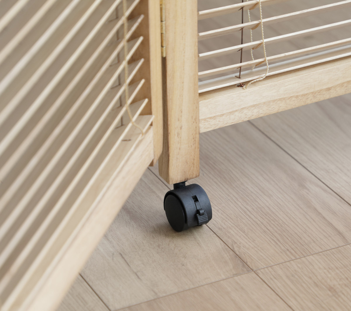 キャスター付きで、レイアウト変更や向きの調整もスムーズ。5個中3個はストッパー付きなので、使うときはしっかり固定できます。
