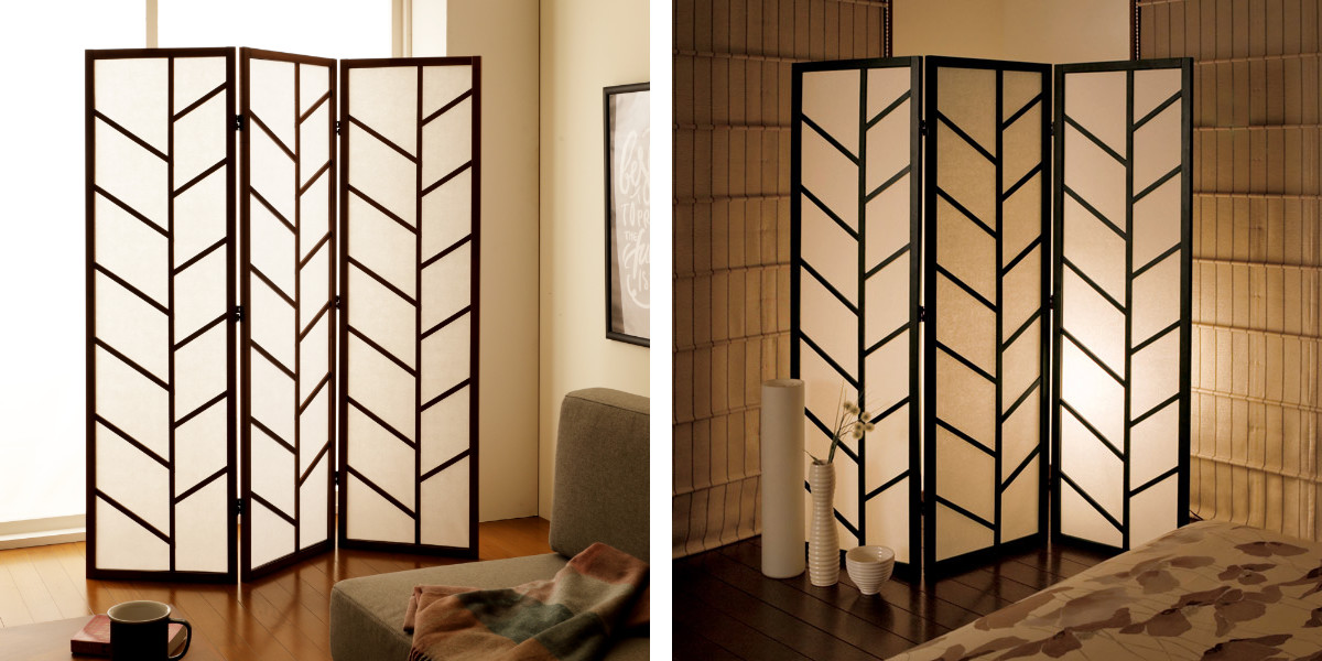お部屋の間仕切りとしてはもちろん、衝立の後ろ側に照明を置くとムードのある大人の雰囲気を演出できます。空間を仕切るだけではなく、お洒落なインテリアとしてもお使いいただけます。
