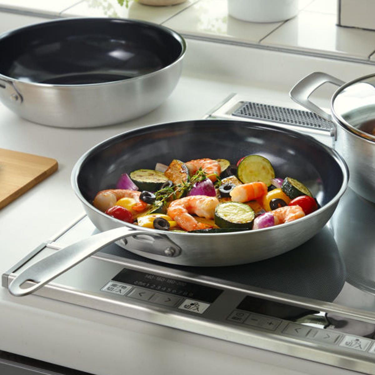 内面・外面ともに、セラミック加工が施されています。PFOA・PFOS不使用で、人にも環境にもやさしく、安心してお使いいただけます。家族分の料理やボリュームメニューにおすすめの28cm深型フライパンです。