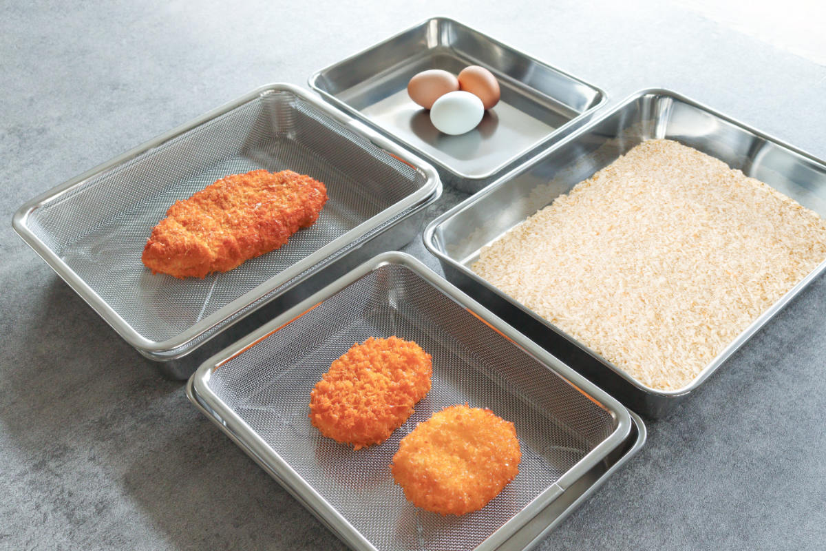 肉や魚の下味付け、粉付け、天ぷらの衣付けなど、毎日の料理作りで活躍します。同シリーズの角ザルと組み合わせれば、下ごしらえから盛り付けまでさらに効率よく行えます。