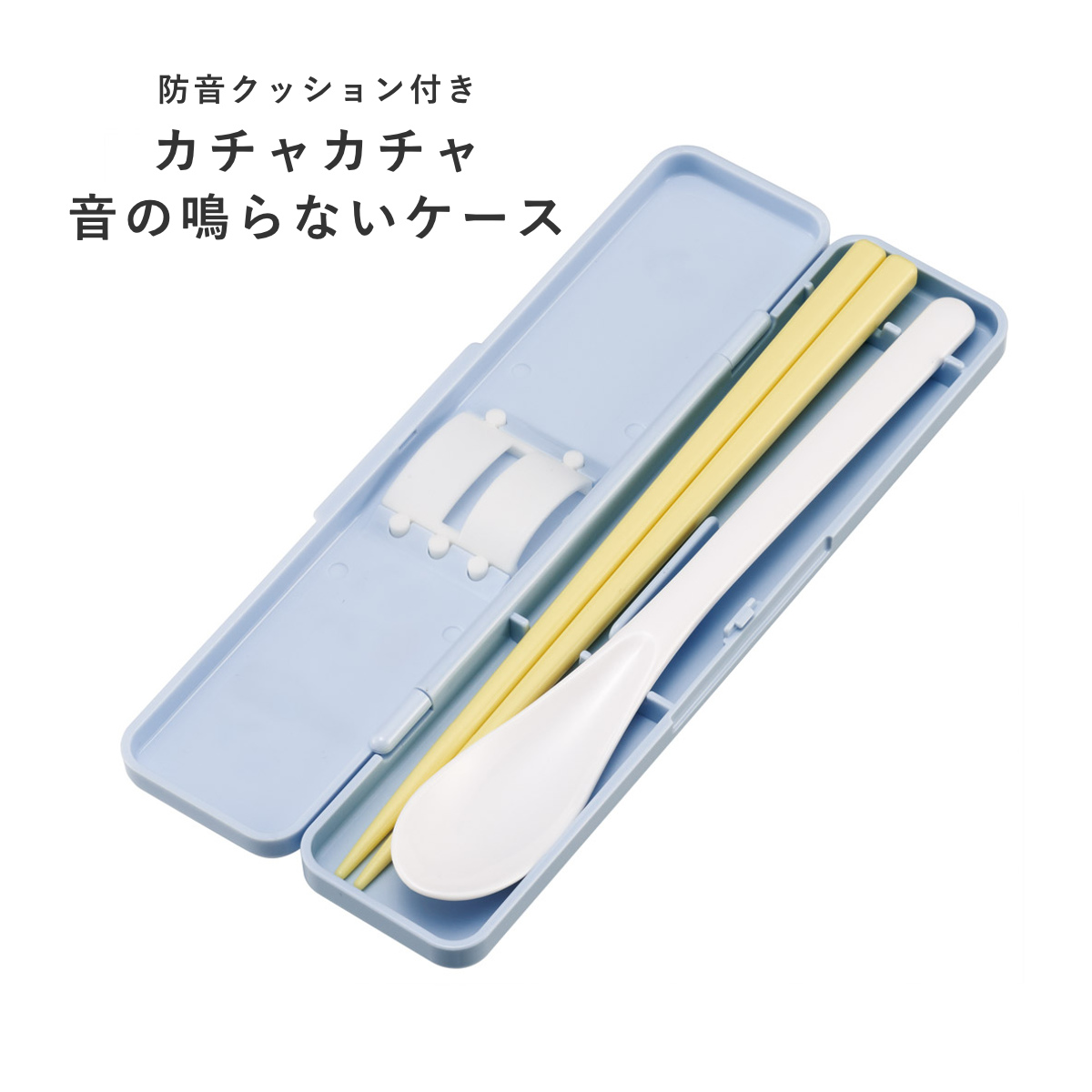 カトラリーを持ち運ぶときに、ケースにあたってカチャカチャ音が鳴りにくいようにケースの中に防音クッションが付いています。クッションがスプーンとお箸をしっかり押さえ、上下左右に動かないので音が鳴りにくい仕様です。
