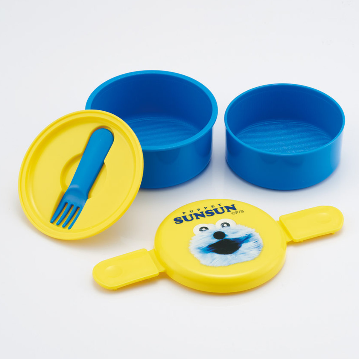 丸型のかわいい2段タイプのランチボックスです。プラスチック製のミニフォーク付きで別でカトラリーを持ち歩かなくても大丈夫です。食べ終わった後は、下段に上段を収納できる入れ子式で、コンパクトに持ち帰ることができます。
