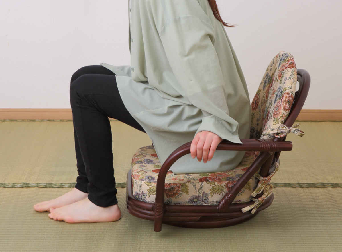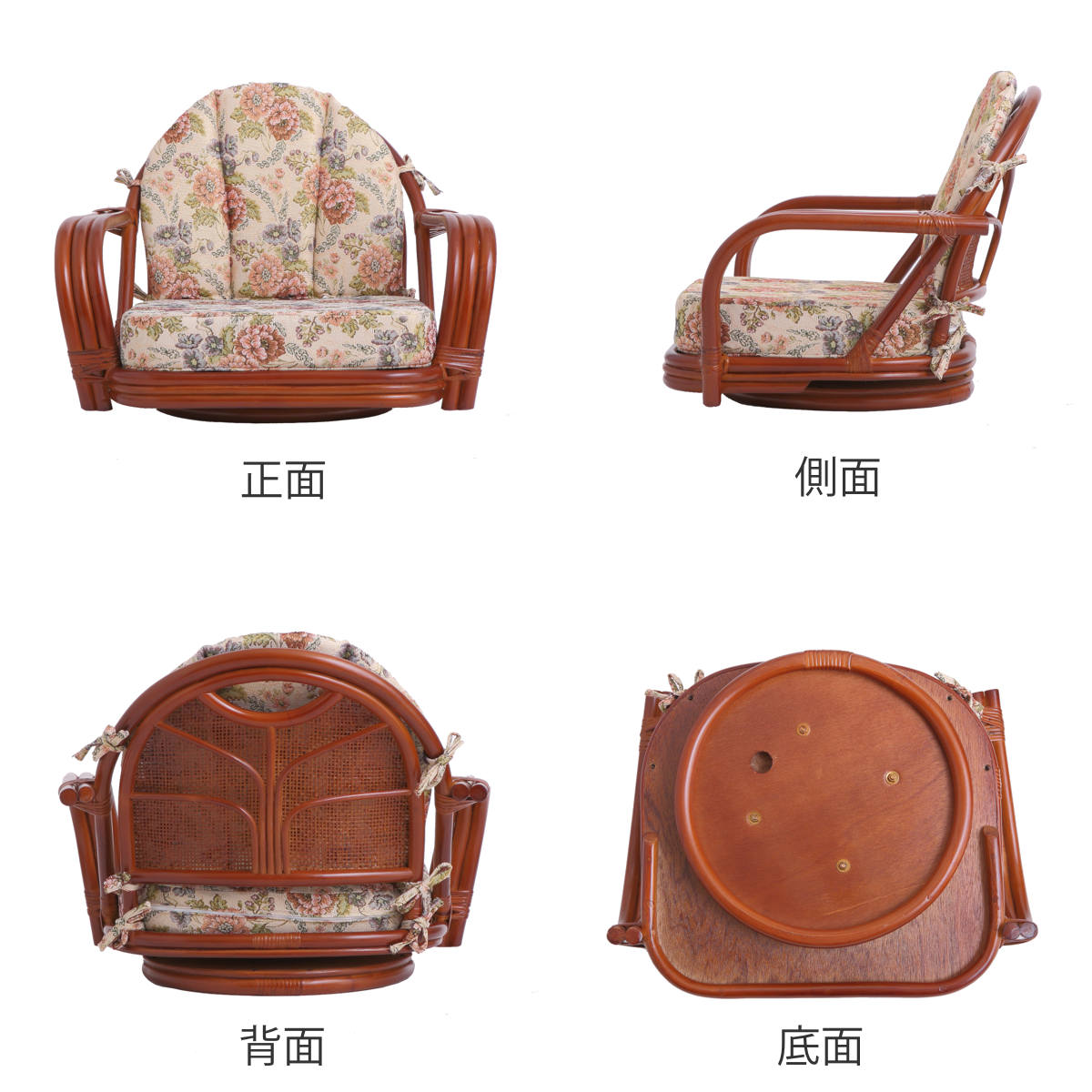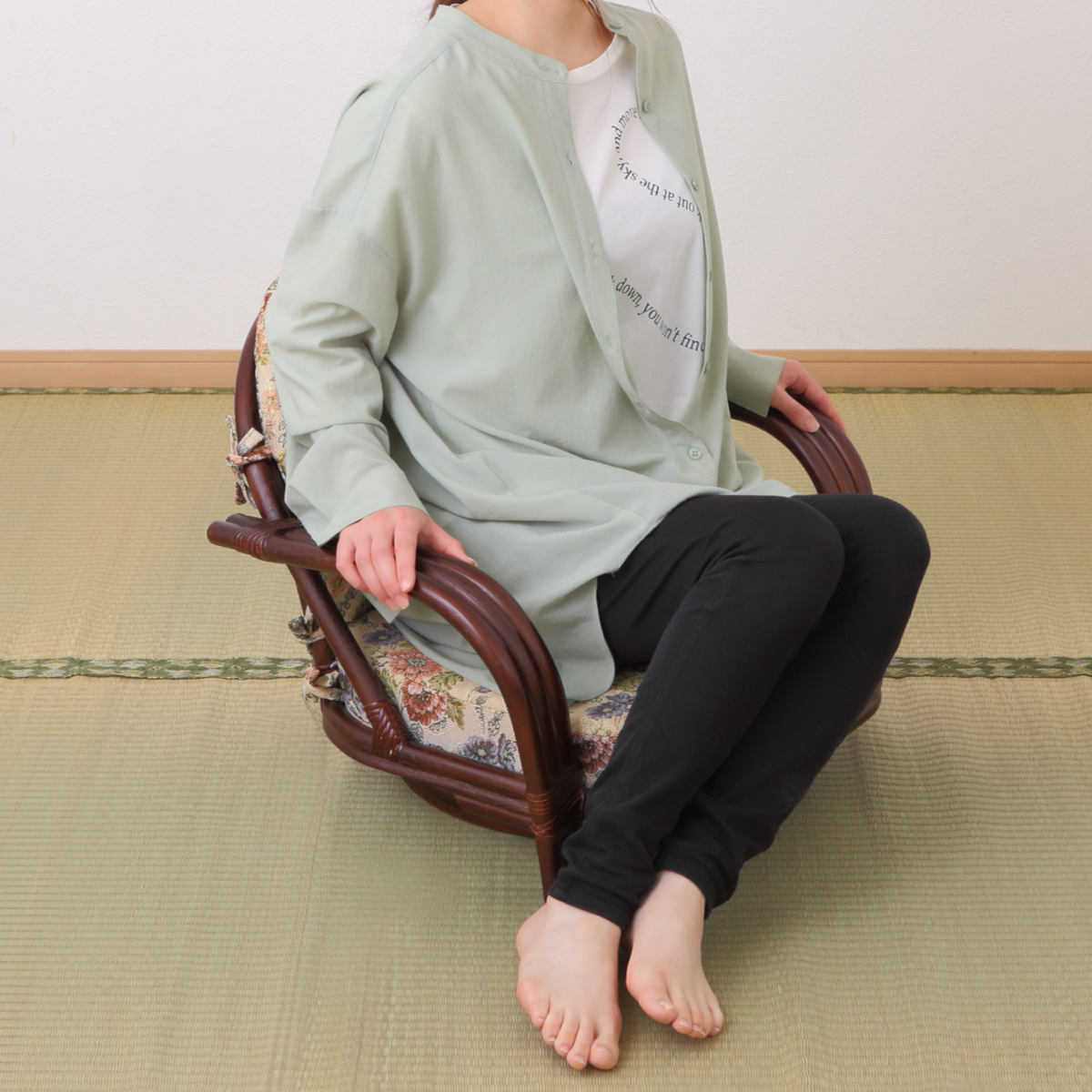天然素材、ラタンを贅沢に使用した回転座椅子です。こたつでも使いやすい座面高16cmで、足を伸ばしてゆったりと座っていただけます。ラタン製の座椅子は通気性がよく年中快適。天然素材の風合いと温もりが、くつろぐ時間にぴったりです。
