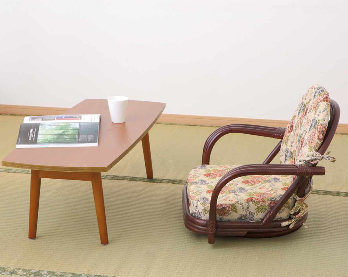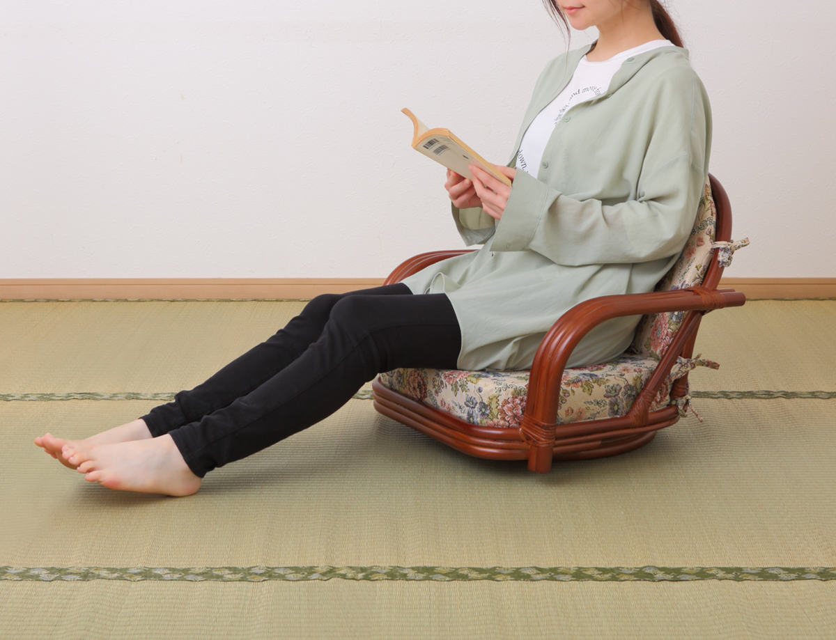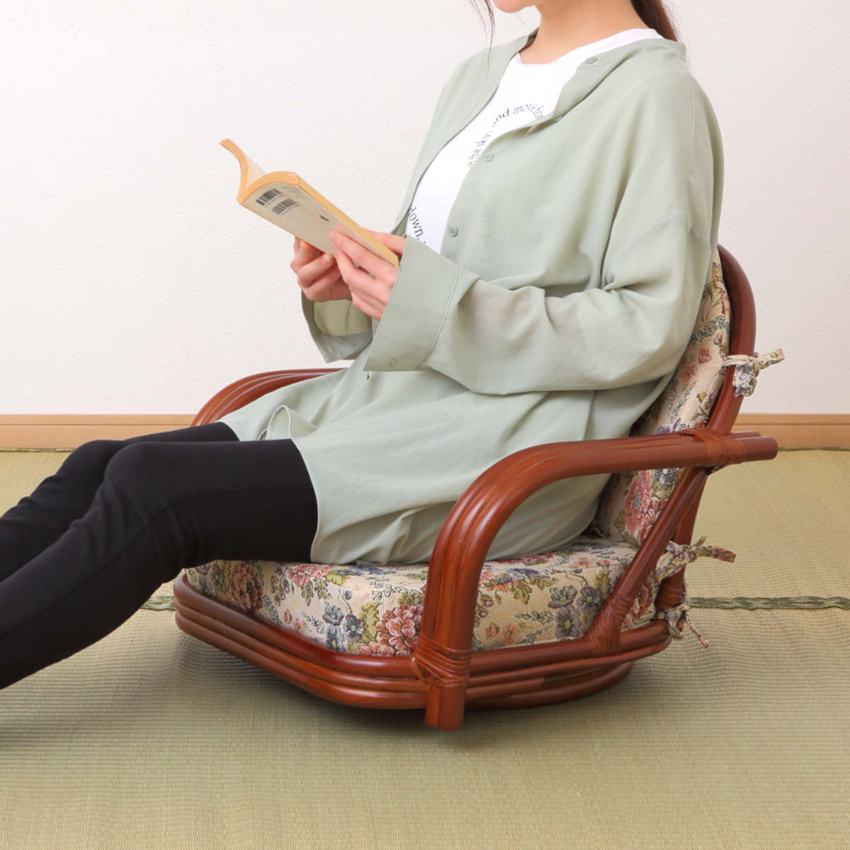 天然素材、ラタンを贅沢に使用した回転座椅子です。こたつでも使いやすい座面高16cmで、足を伸ばしてゆったりと座っていただけます。ラタン製の座椅子は通気性がよく年中快適。天然素材の風合いと温もりが、くつろぐ時間にぴったりです。