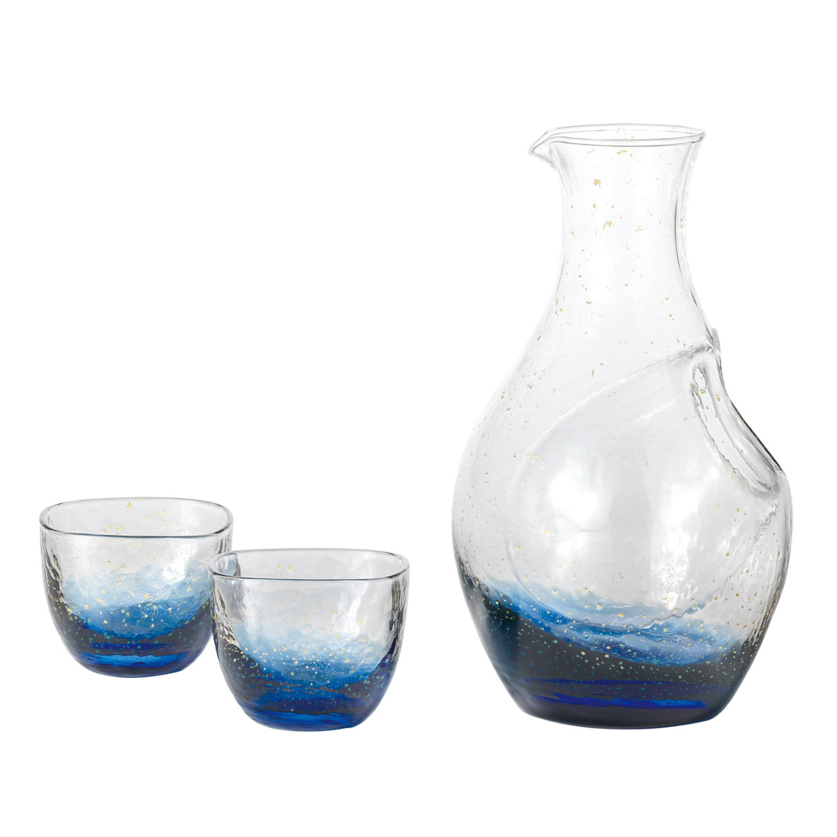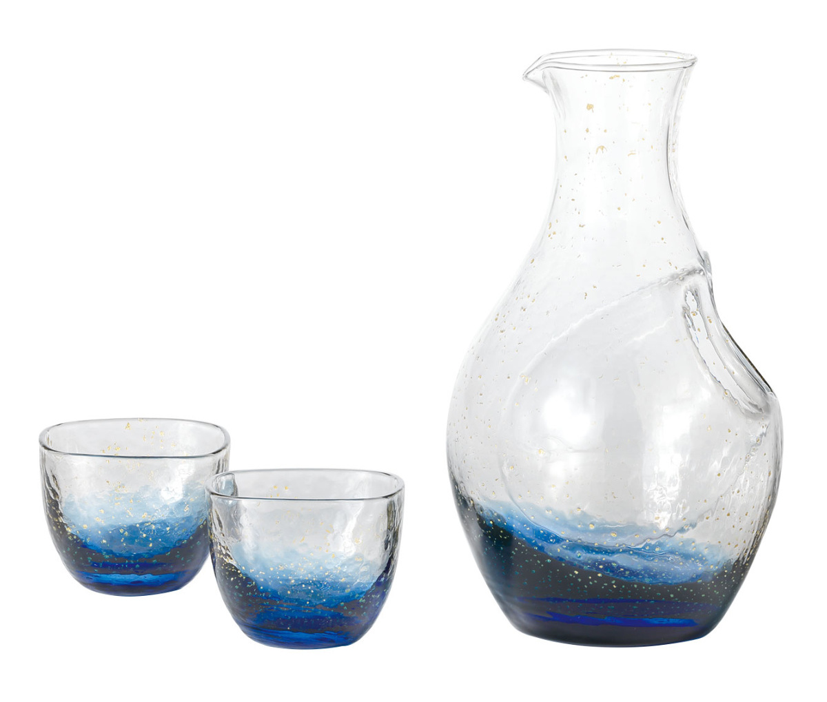 ●深い藍色と金箔の高級感があり、氷ポケット付きカラフェで冷酒をゆったり楽しめます。