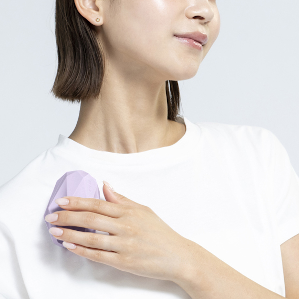表面の凹凸形状で、転がしほぐしができるデコルテローラーです。面部分が立体的にツボを刺激します。先端の突起で、ピンポイントにツボ押しができます。