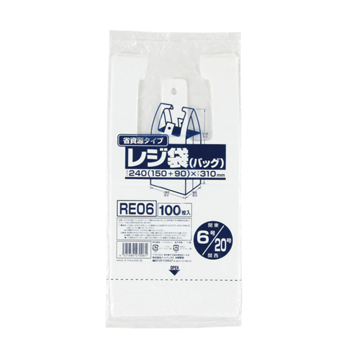 ●東日本(関東)06号サイズ、西日本(関西)20号サイズのレジ袋(手付きポリ袋)です。
