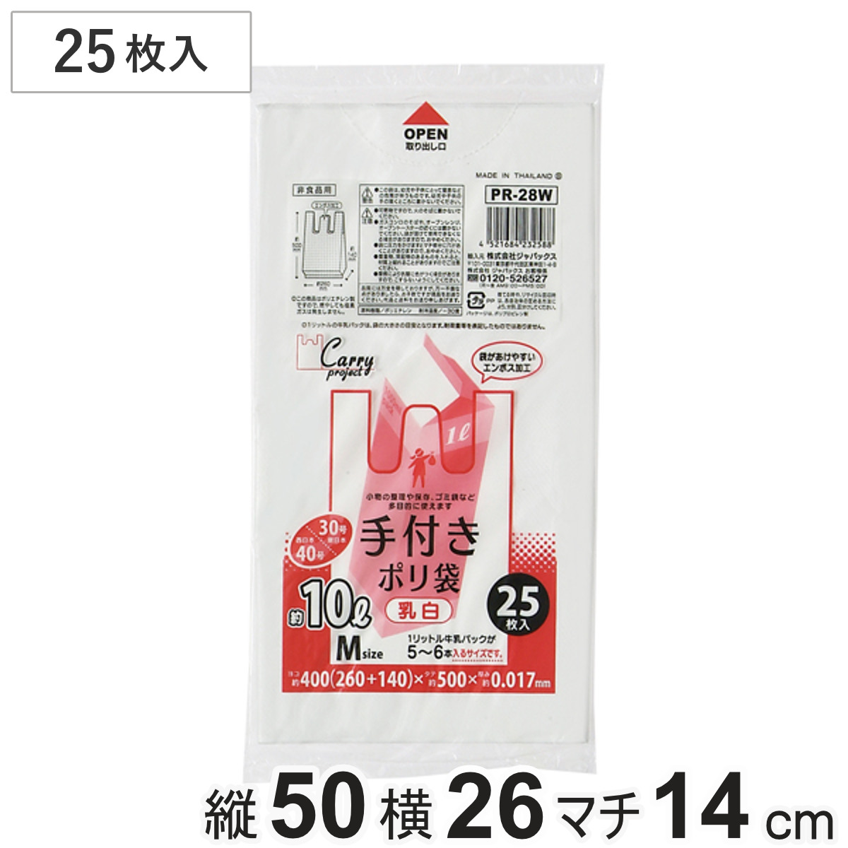 ●結んで運べる便利な手付きポリ袋(レジ袋)です。