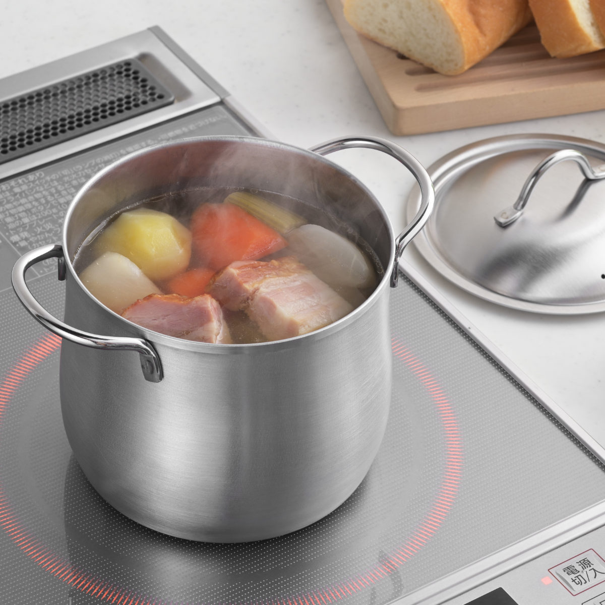 フタには蒸気穴が開いているので吹きこぼれ防止になり、しっかり弱火でグツグツ煮込むことができます。じっくり火を通したい料理を作るのに最適です。