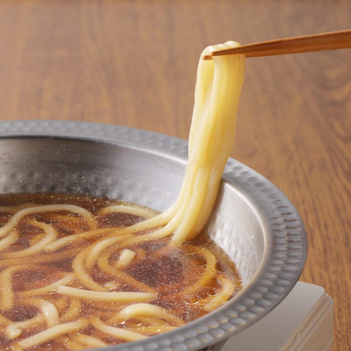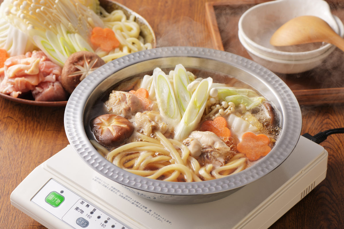 ちりすきやうどんすきが楽しめるステンレス製の鍋です。浅めの形状で具材が沈みにくく、取り出しやすい設計。持ち手がないため、どの方向からでも手を伸ばして取り分けられます。直火・IHに対応しています。
