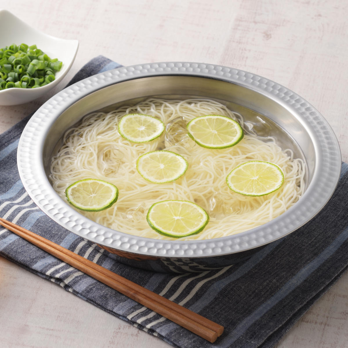 ●高級感のある槌目模様の鍋は、しゃぶしゃぶやそうめんの器など季節を問わずお使いいただけます。
