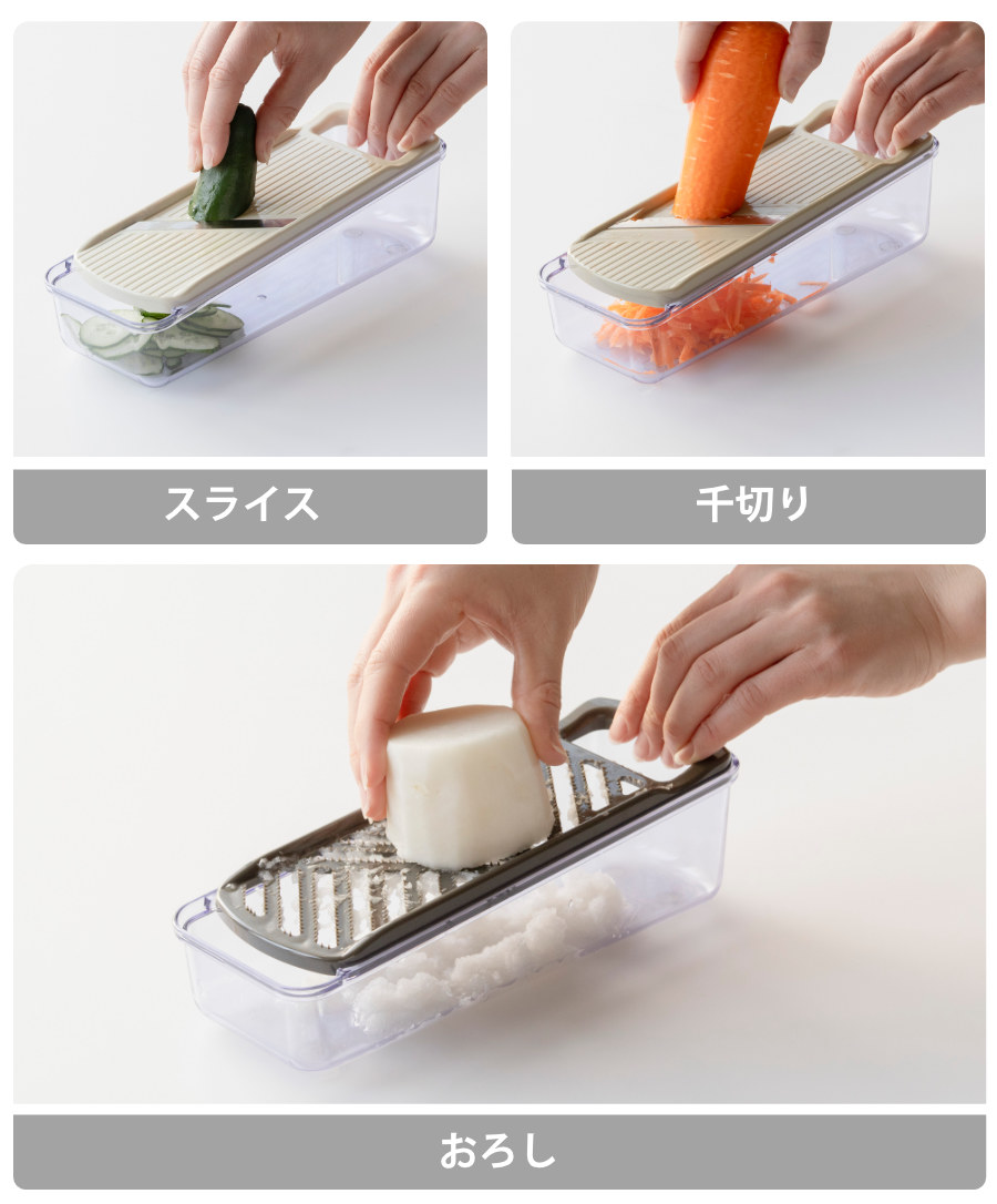 | 内容量 | スライサー、千切り、おろし、安全ホルダー、収納ケース、容器 各1個 |