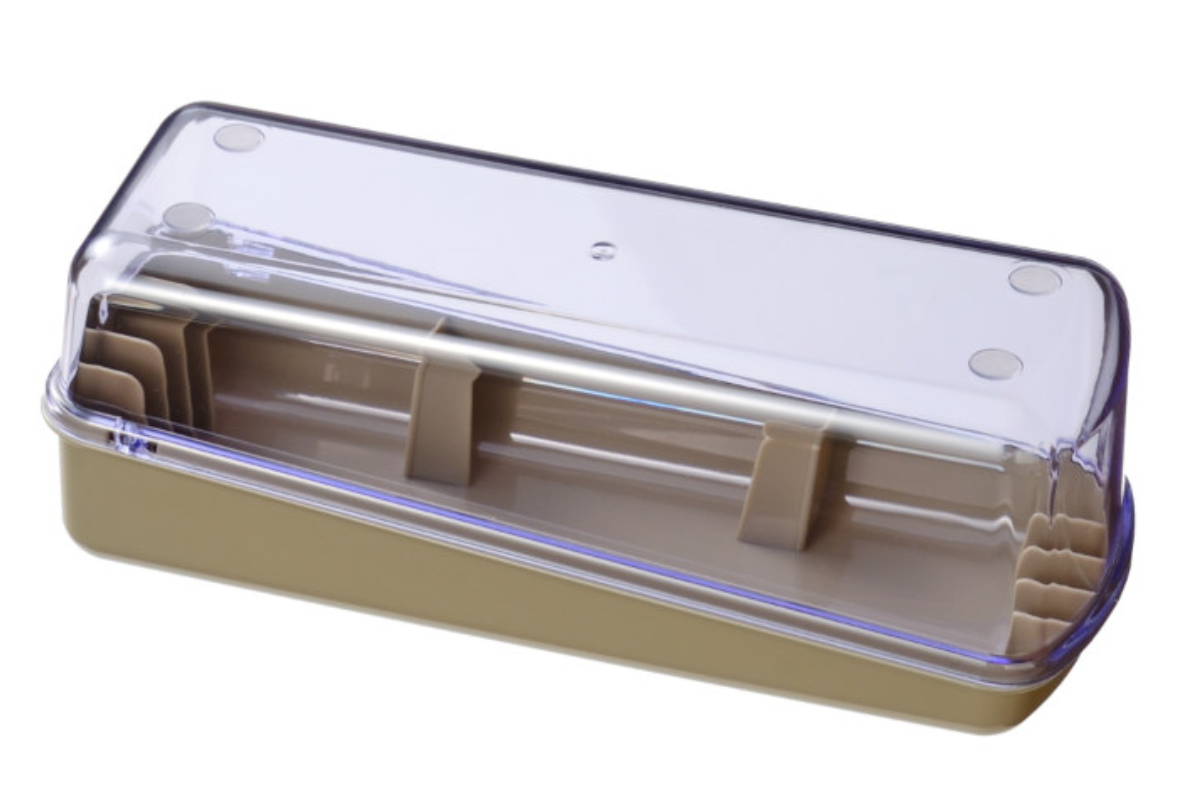 スライスした食材は、付属の受け容器にそのままキャッチできます。すべてのパーツを収納ケースにまとめて保管できるので、使わないときもすっきり片づきます。