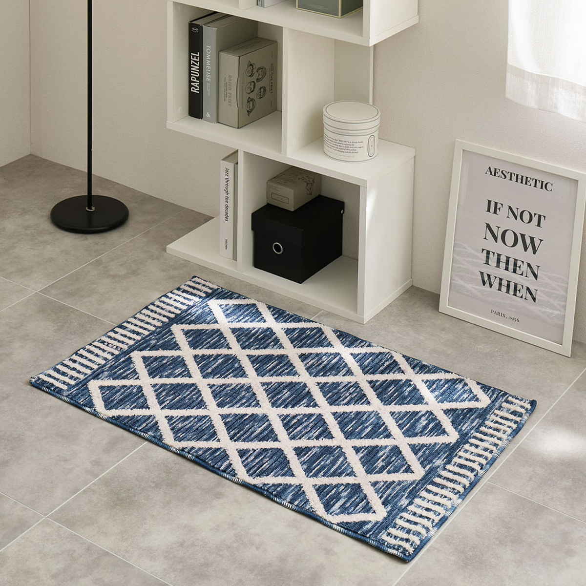 北欧やモロッコ、ベニワレンなど、人気の柄を組み合わせたデザインです。どんなインテリアにも馴染みやすく、玄関はもちろん、ベッドサイドにもおすすめです。