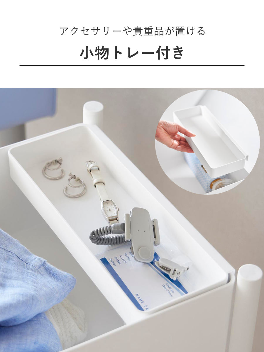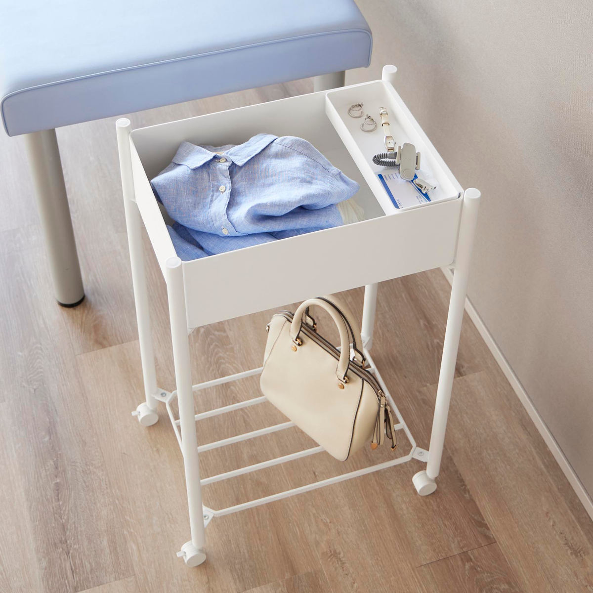 アクセサリーや貴重品が収納できる小物トレー付きです。アクセサリーが衣類に埋もれることなく分けて収納できるから診察後や施術後の着替えがスムーズにできます。
