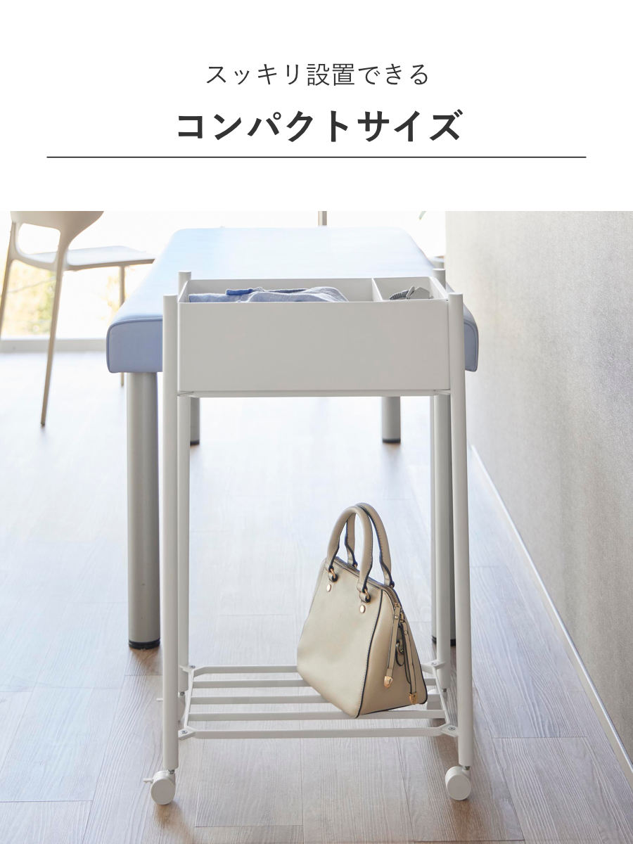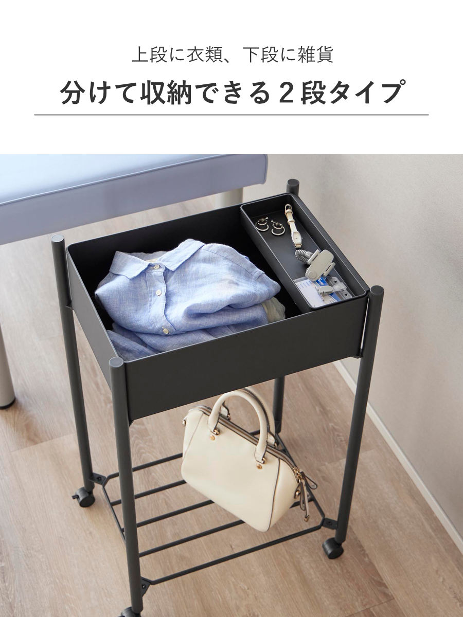 上段のバスケットには衣類を、下段のワイヤー棚には靴やバッグを収納できる2段タイプです。出し入れもしやすく、限られたスペースを効率よく活用できます。
