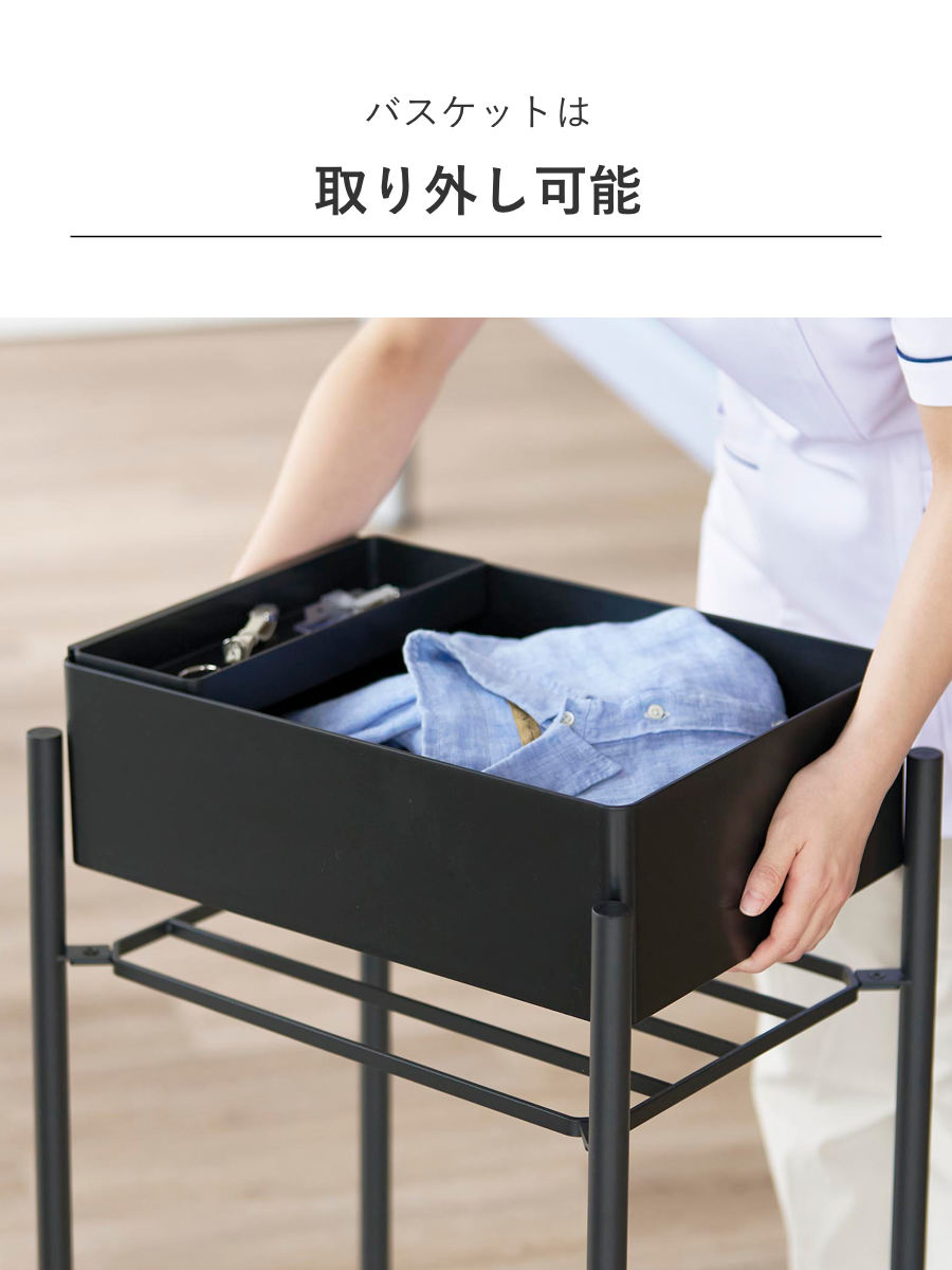 厚手の衣類も収納できる深さのあるバスケットは取り外しが可能です。バスケットに収納している物を触ることなく、そのまま必要な場所へバスケットごと持ち運べます。