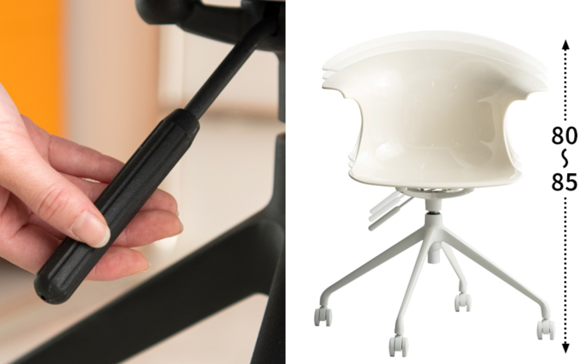 座面下のレバーを上げるだけでカンタンに高さを80~85cmで昇降できます。