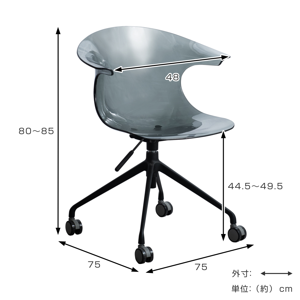 | サイズ | 約 幅75×奥行75×高さ80~85(cm) 座面高:約 44.5~49.5(cm) |