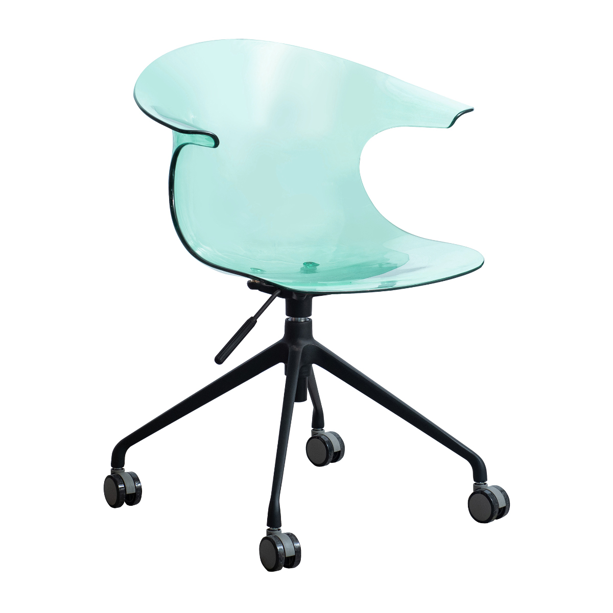 美しい曲線座面が身体にフィットするデザインチェア「Tois(トイス)」です。強度の高いポリカーボネート製の座面は背もたれ一体型で、ゆとりをもってお座りいただけます。不透明で白脚のクリーム、グリーン、透明で黒脚のクリア、ライトグリーン、アンバー、ブラックの6カラーからお選びいただけます。