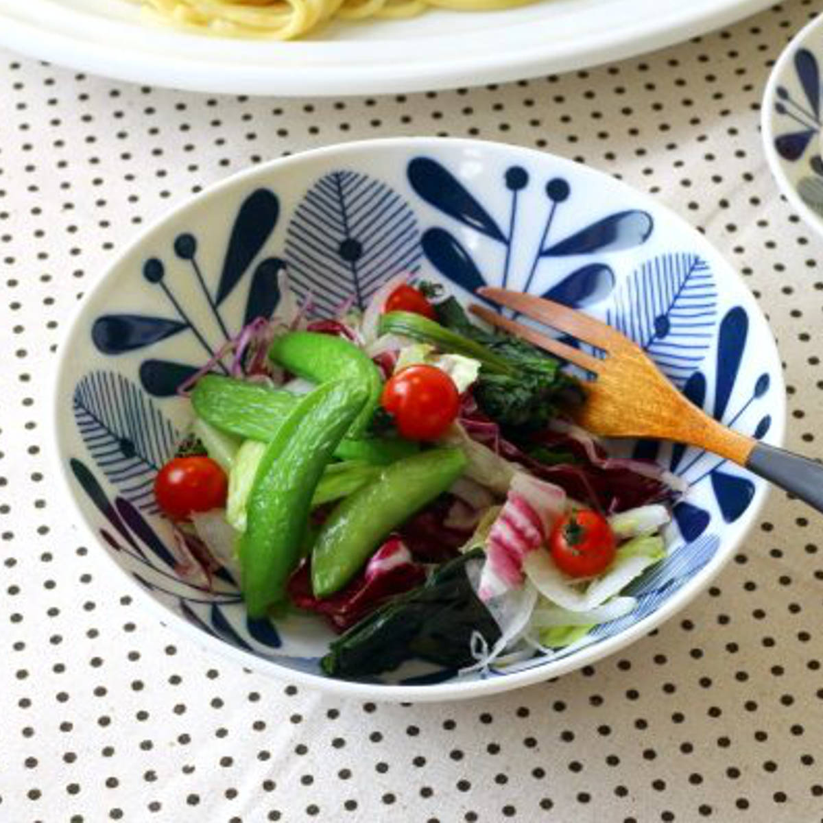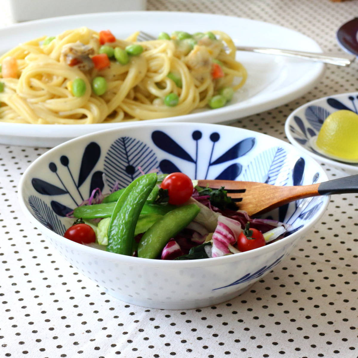 サラダはもちろん、煮物にも使える万能なサイズのボウルです。深さがあるので汁気のある料理にも安心して使えます。軽くて扱いやすい磁器製なので、毎日の食卓に気軽に取り入れられます。