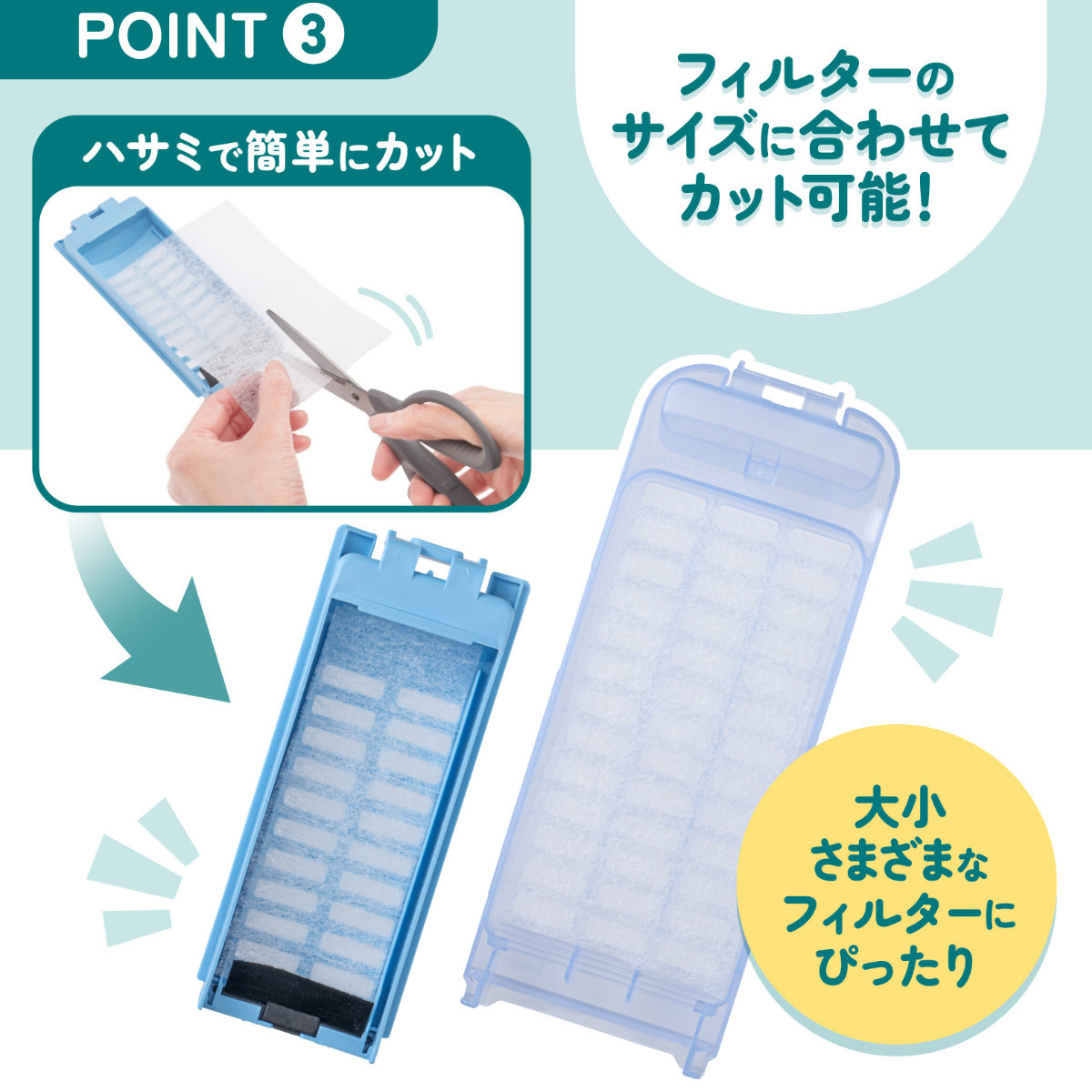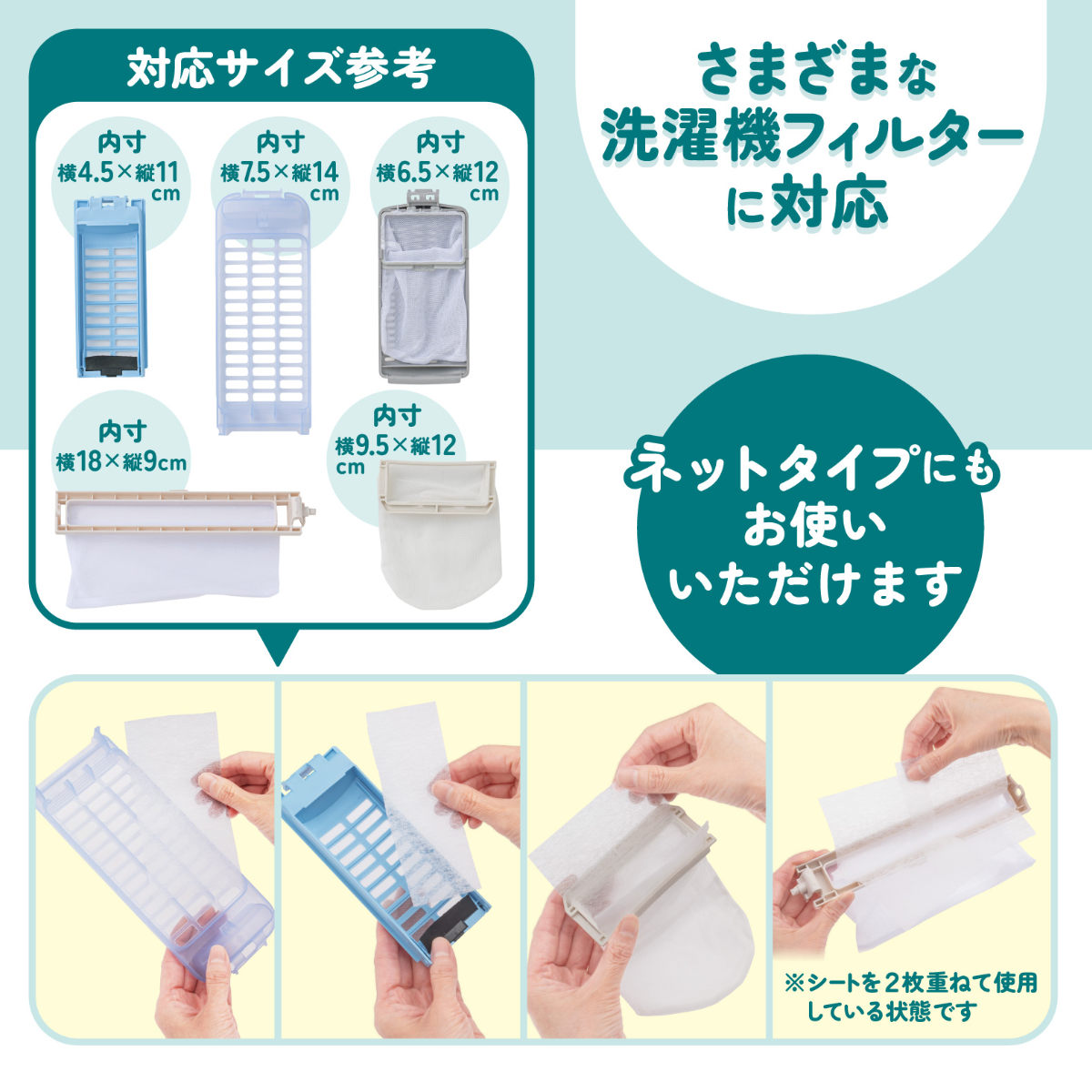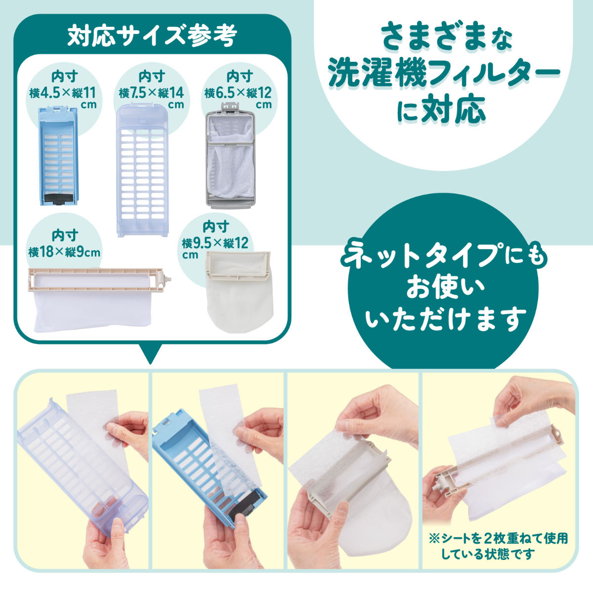 フィルターに合わせて簡単にカットできるので、さまざまな洗濯機フィルターにお使いいただけます。