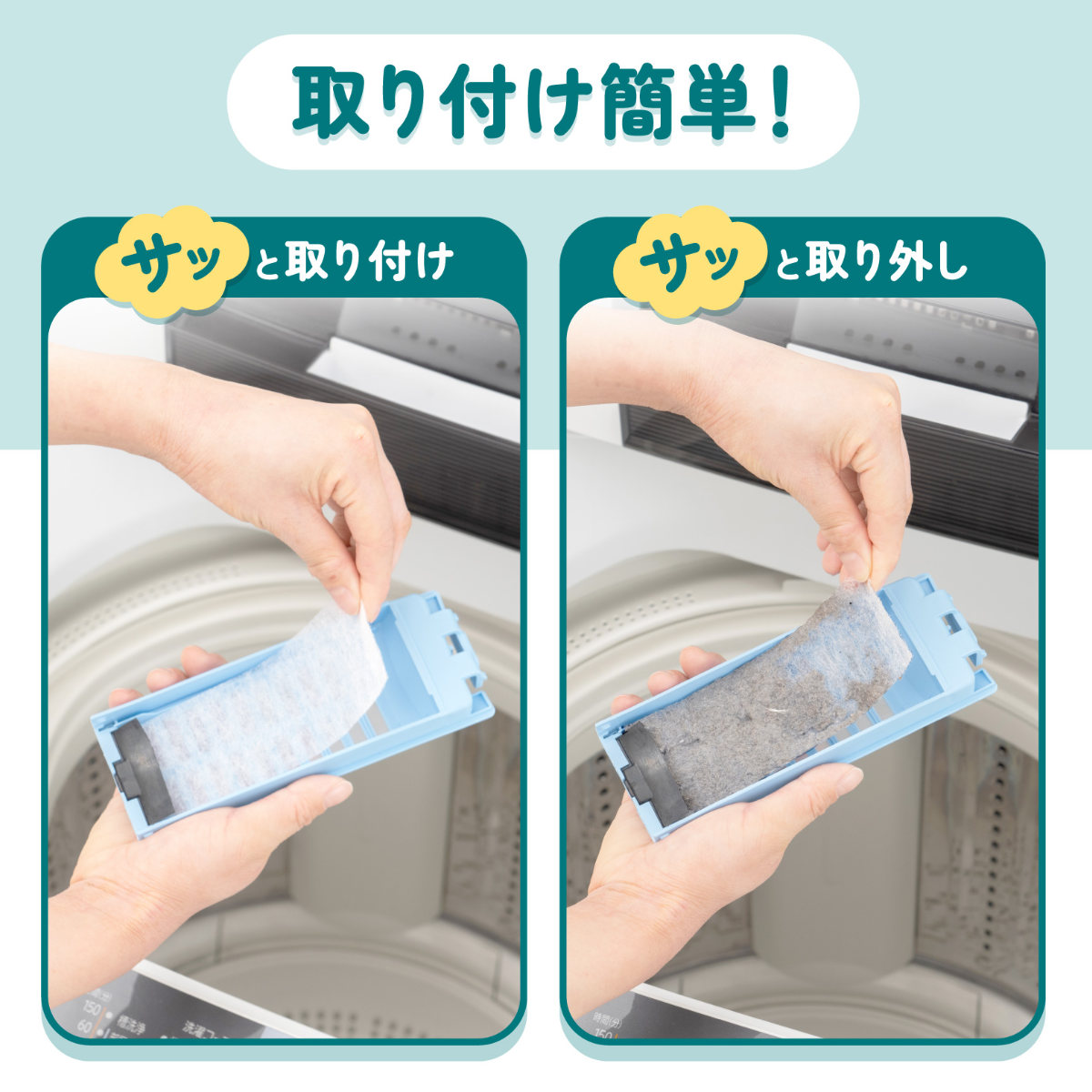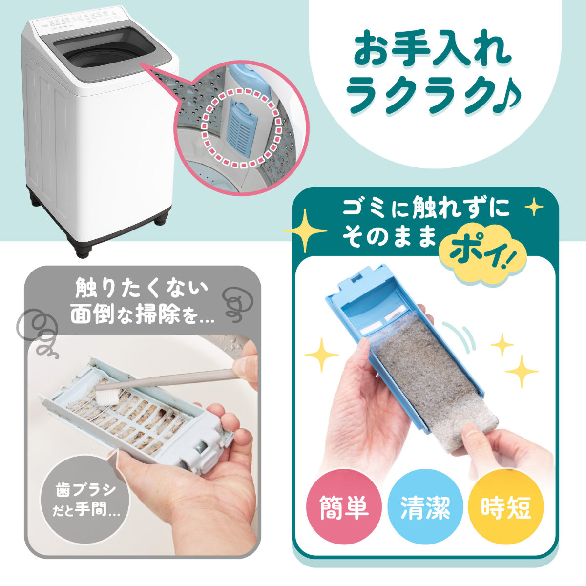 ●洗濯機の糸クズフィルター本体に取り付けて使用後は取り外すだけで、ゴミに触ることなく簡単に捨てられます。