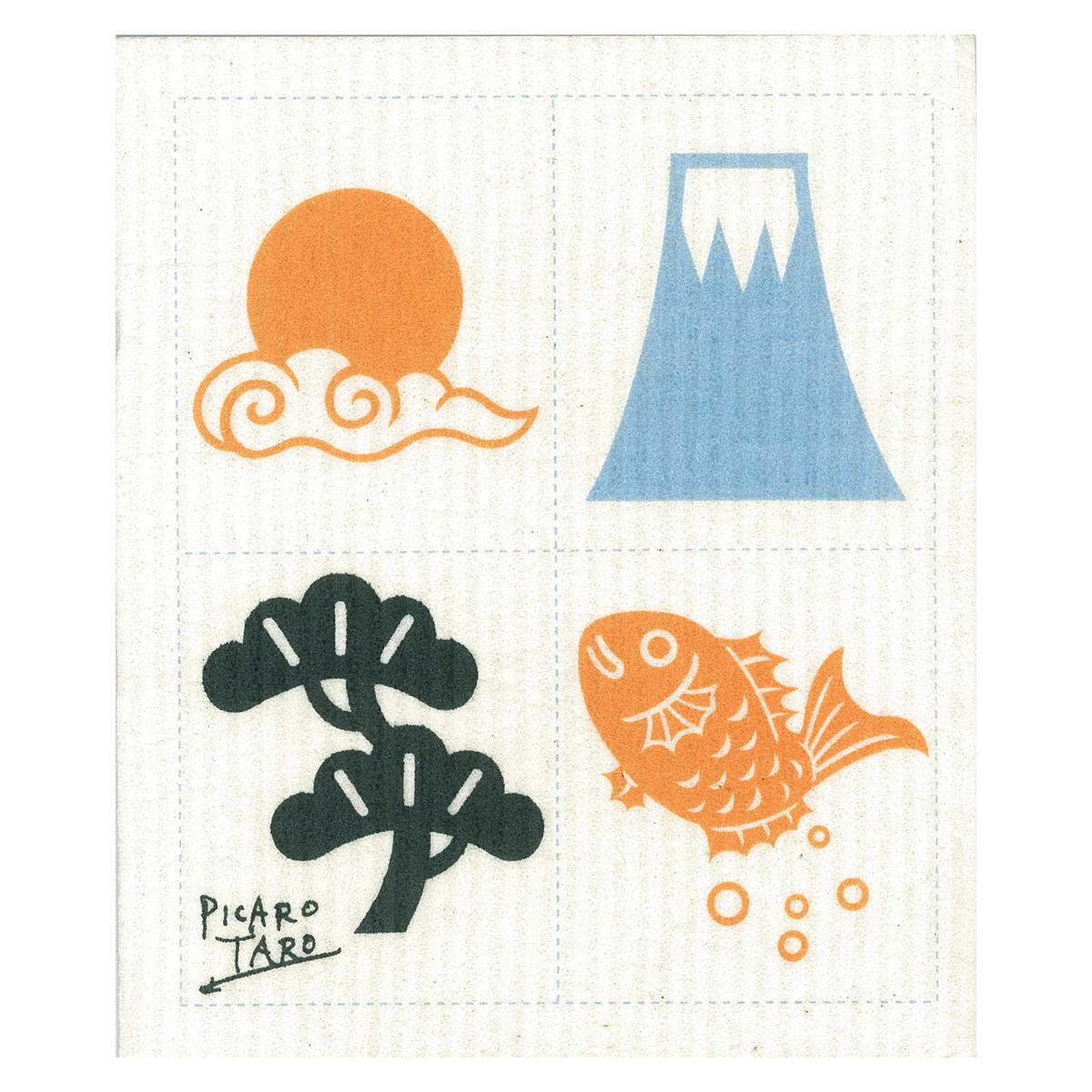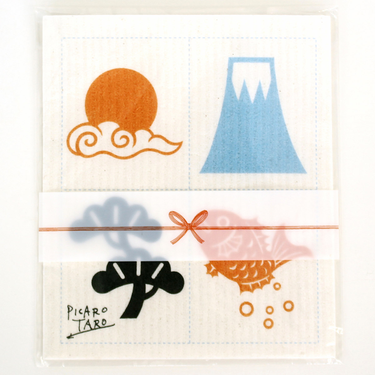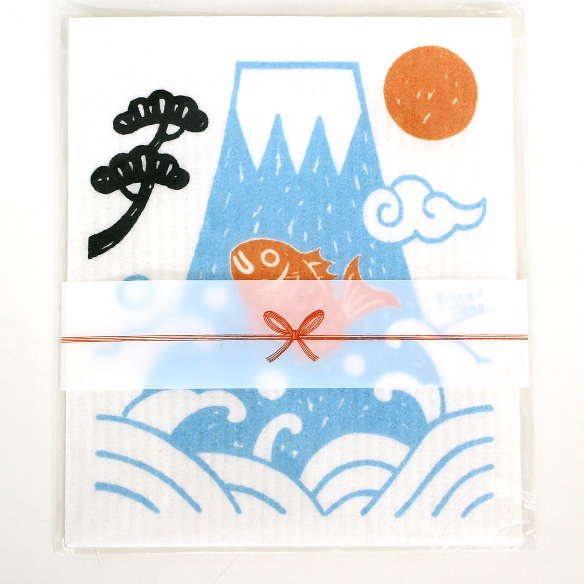 富士山デザインに「のし」を添えた特別なスポンジワイプ