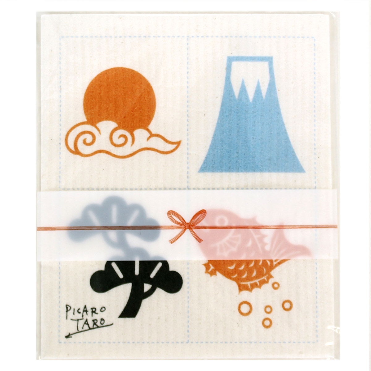 富士山デザインに「のし」を添えた特別なスポンジワイプ