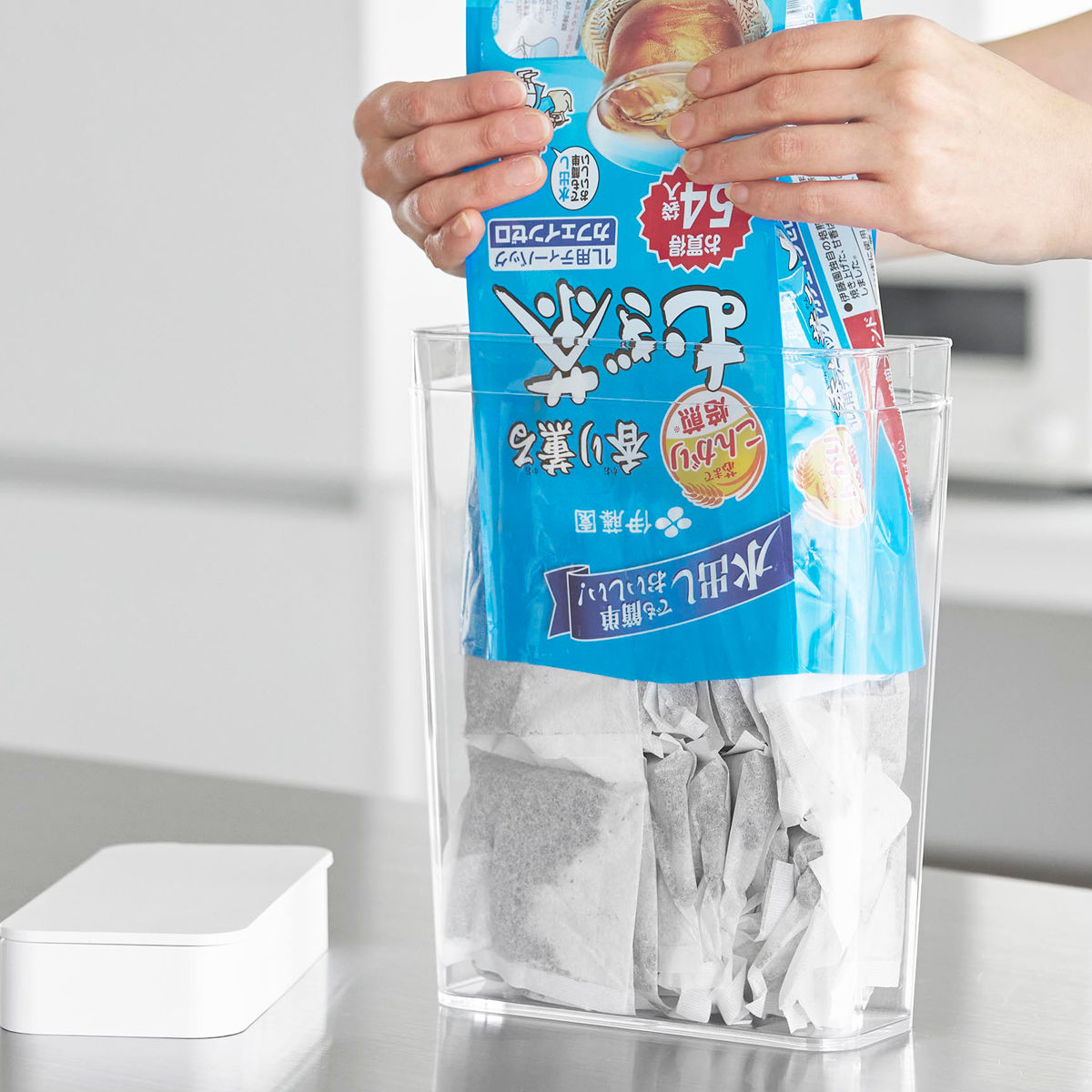 ※麦茶パックのサイズや形状によっては1袋分すべてを収納できない場合があります。