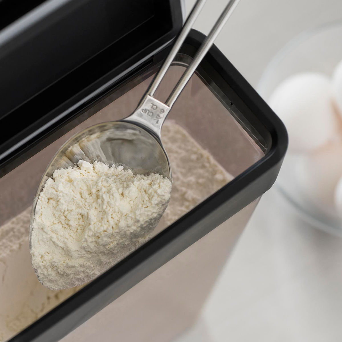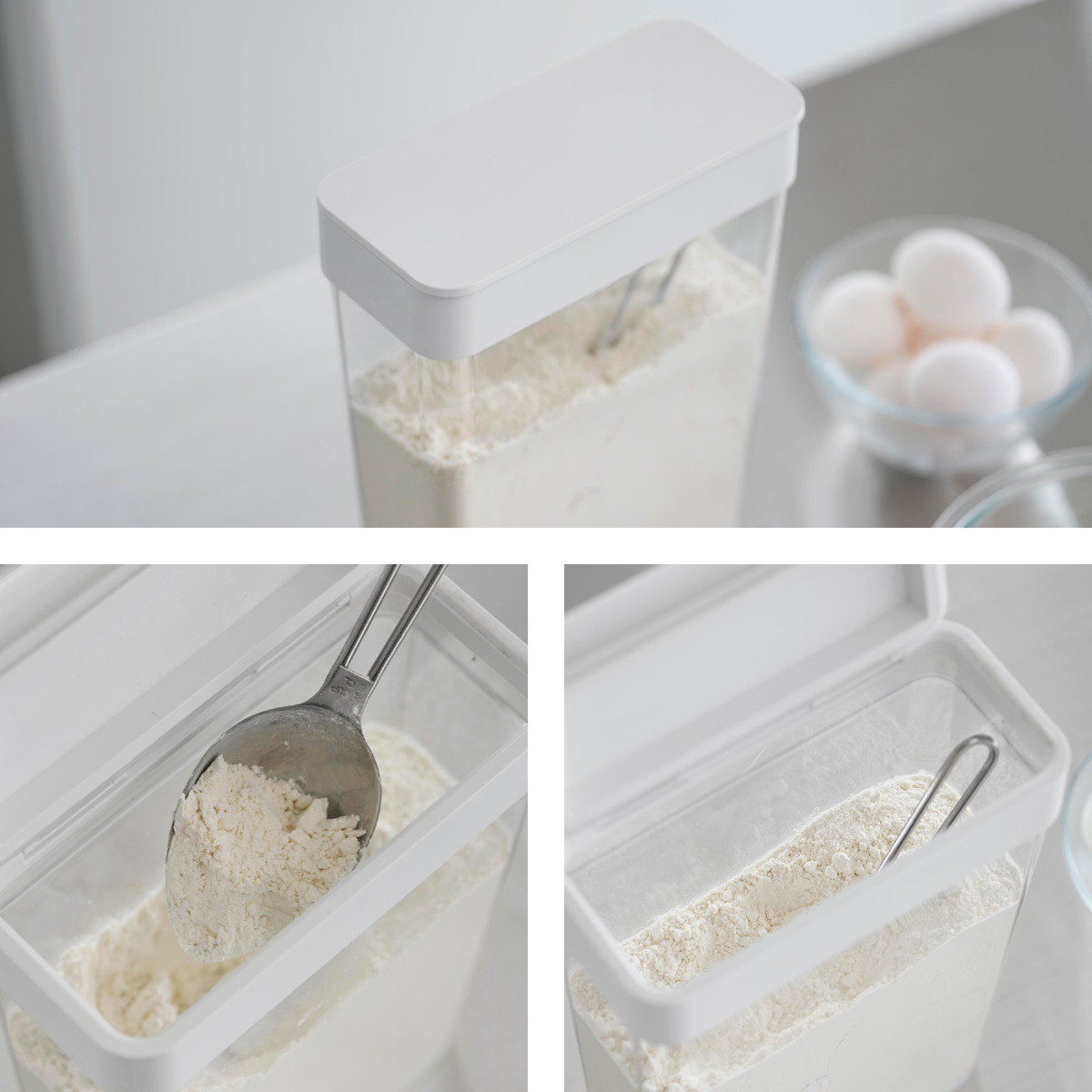 大容量の小麦粉などの移し替えにも便利です。開口部が広いので取り出しもスムーズです。
