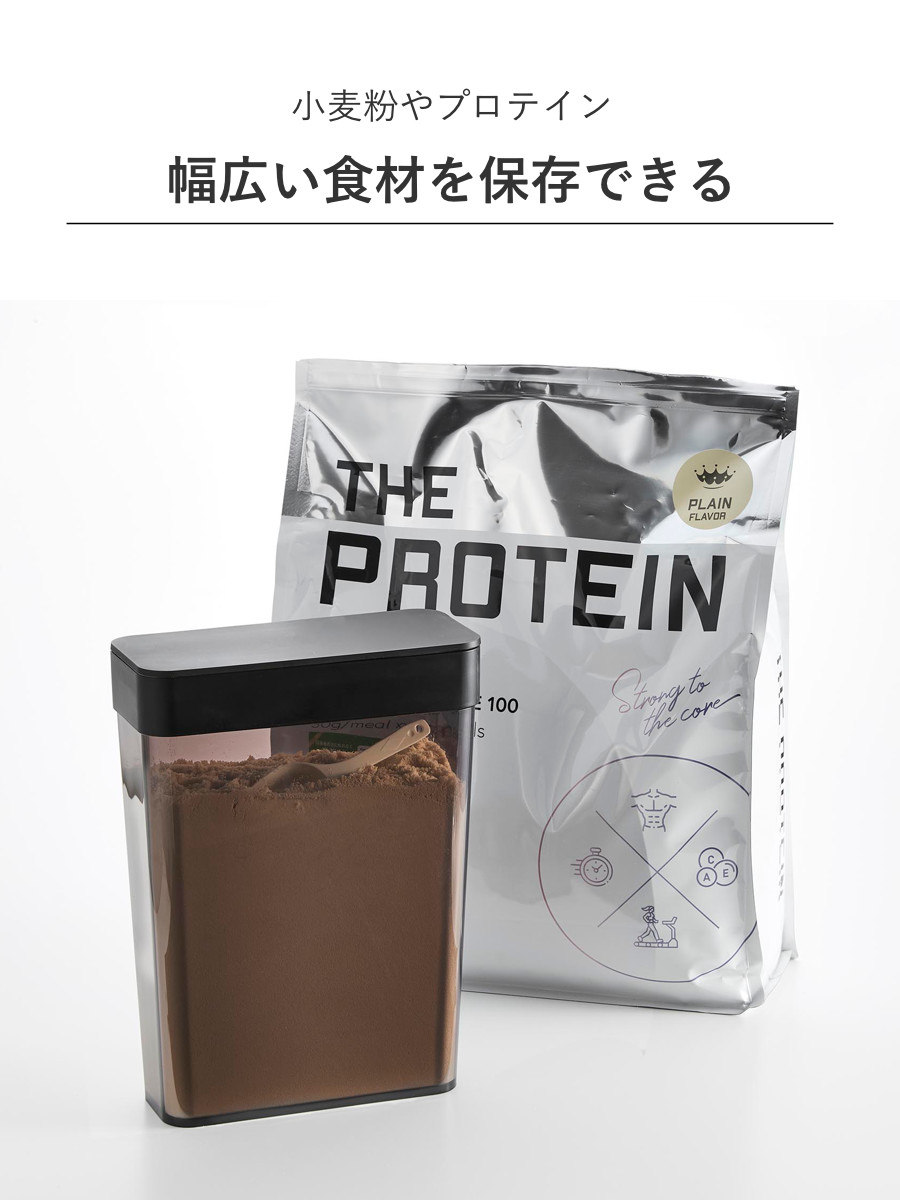 麦茶以外にも、袋入りの砂糖や塩、プロテイン、乾物なども安心して収納できます。