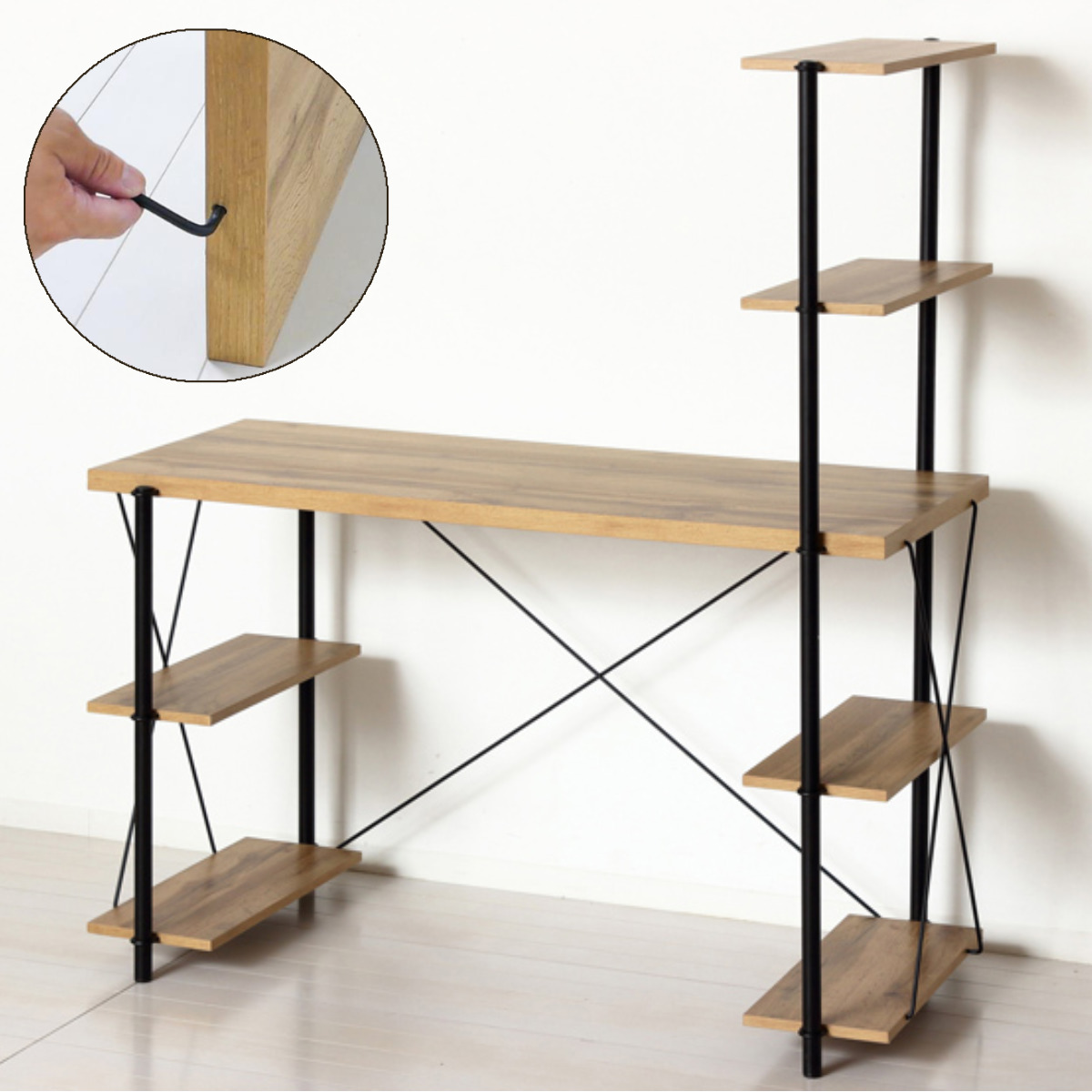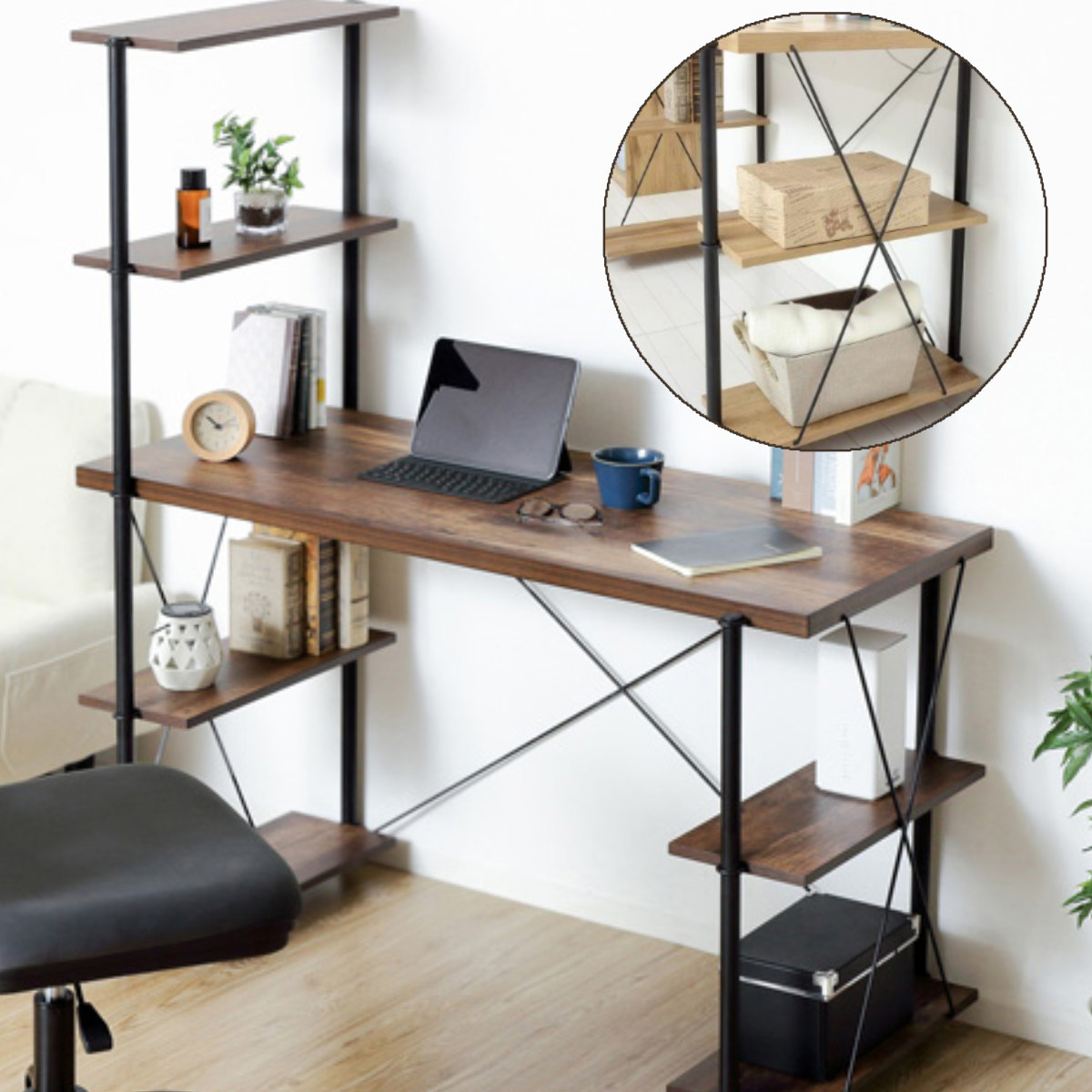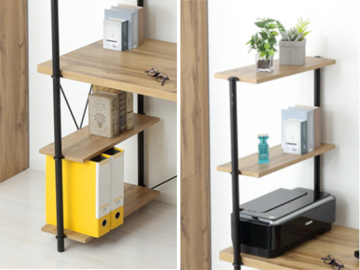 デスクとラックがひとつになった省スペース設計のデスクは、自宅のワークスペースや学習スペースなどにおすすめです。