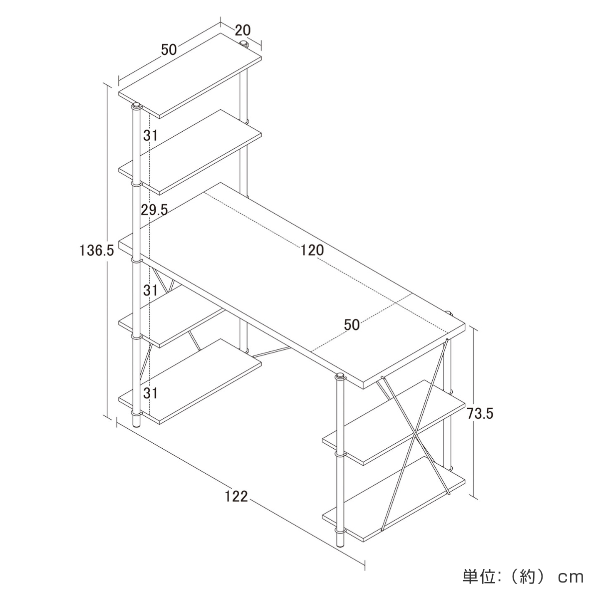 | サイズ | 約 幅122×奥行56×高さ136.5(cm) 天板の厚み:約3cm 棚の厚み:1.5cm |