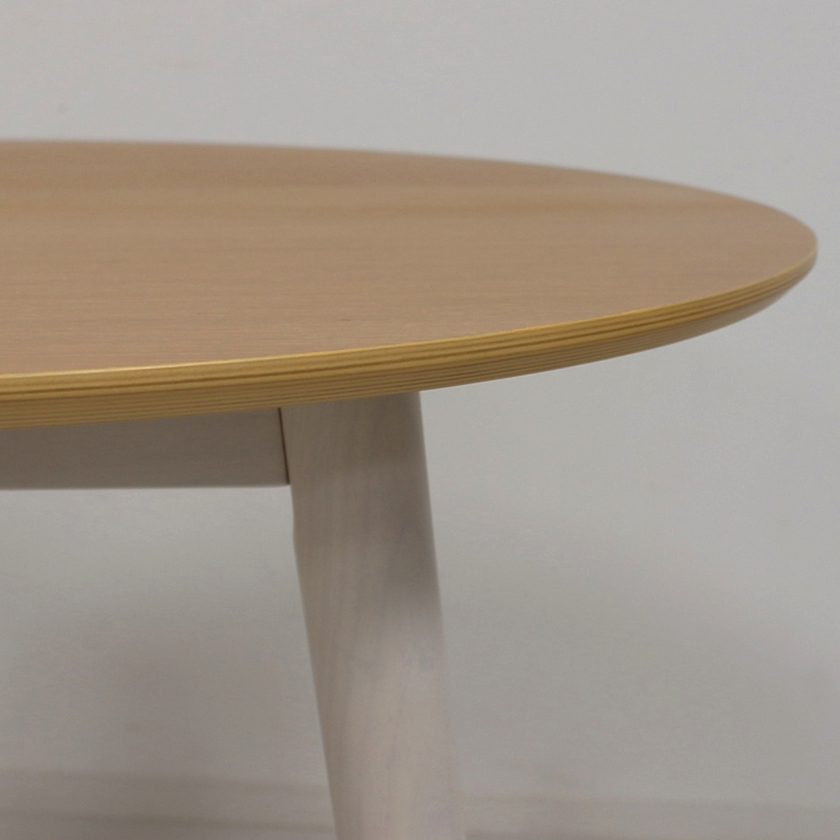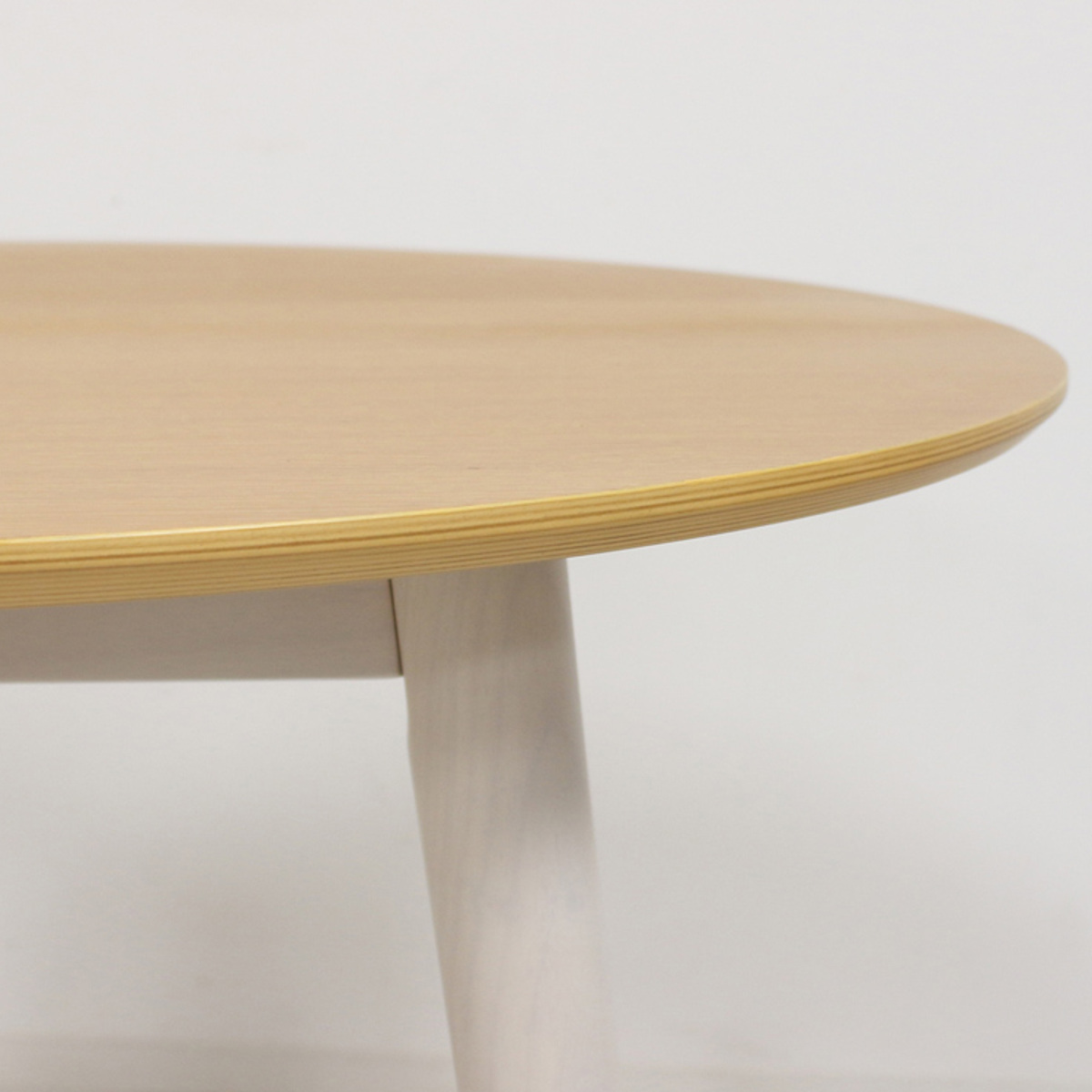 円形のリビングテーブルは角がない分、全体がやわらかな印象になります。自然と視線が交わりお互いの顔がよく見えるので友人や家族との会話が弾みます。角がないのでお子様がおられるご家庭でも安心してお使いいただけます。