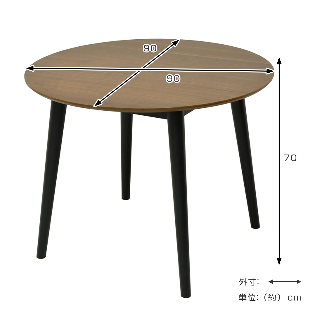 直径90cmの円形天板は、2~4人での食事にちょうどいいサイズ。省スペースでも置きやすく、ワンルームやダイニングにもぴったりです。