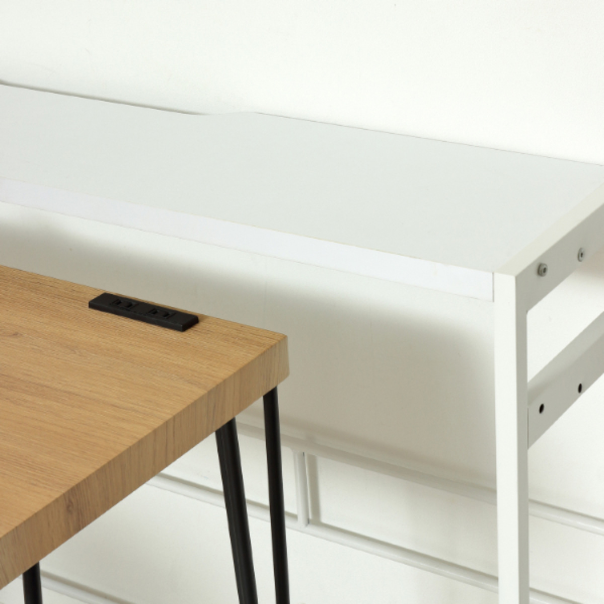 天板下の配線収納で乱雑になりがちなコード類やコンセントタップなどをすっきりまとめることができます。