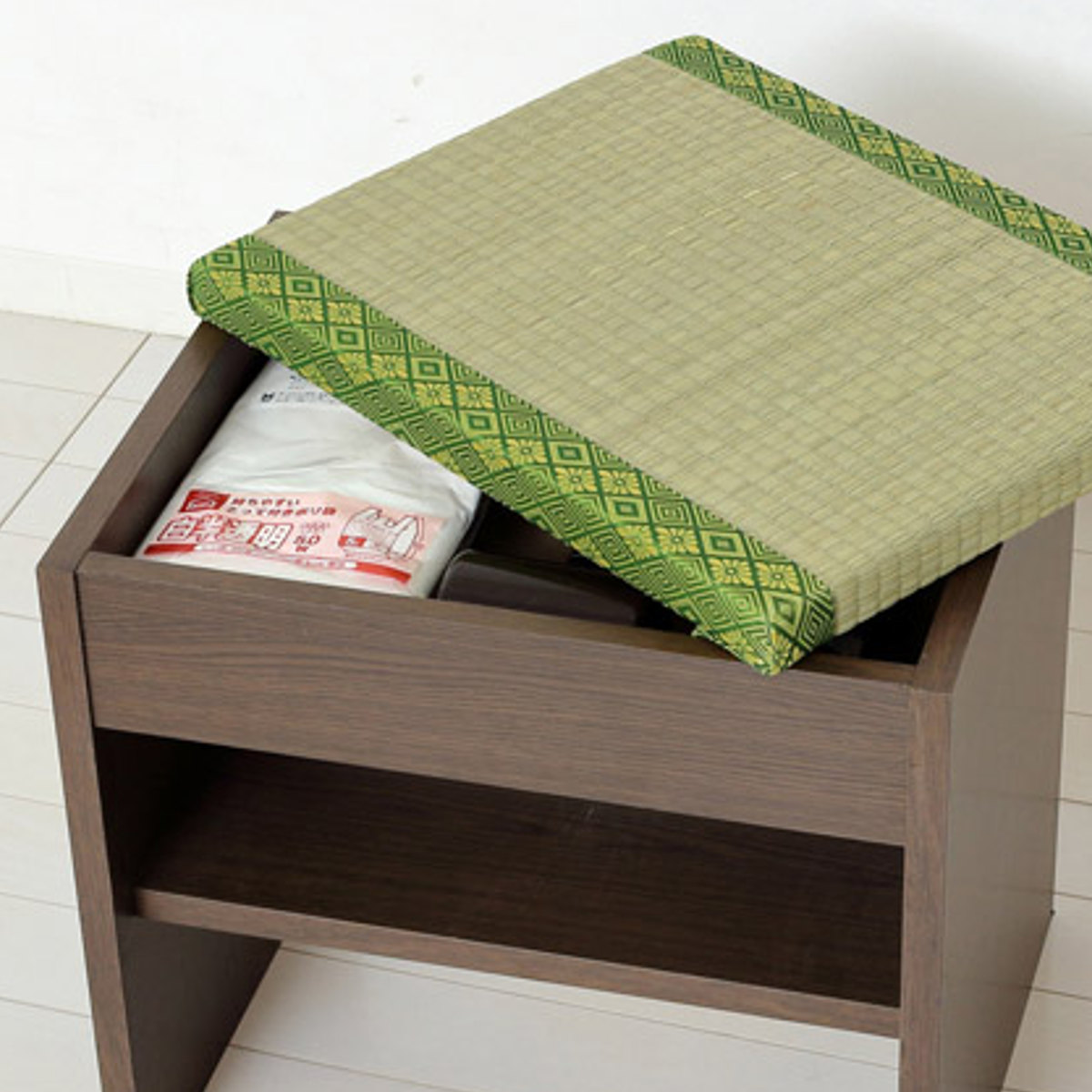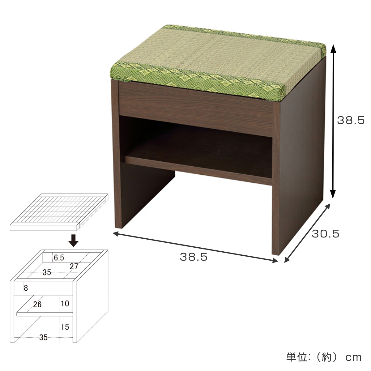 香りの良い天然い草貼りの収納付きスツール 幅38.5cm