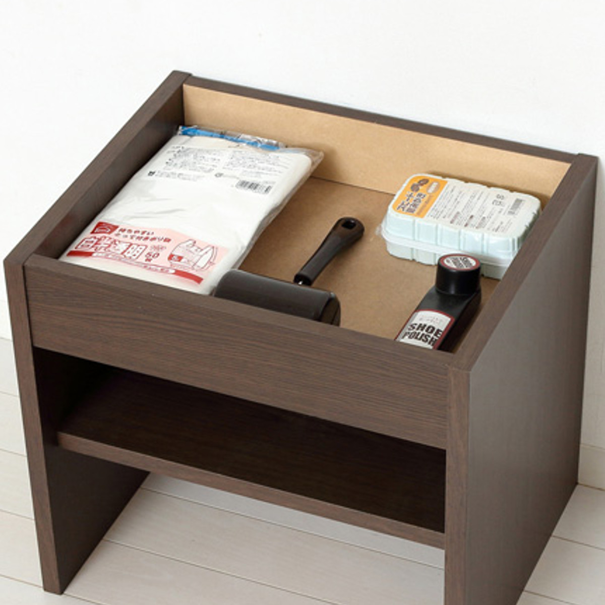 玄関脇などで靴を履くときに腰をかけたり、便利に使える収納付きスツールです。玄関だけでなく、リビングや廊下など様々な場所でお使いいただけます。