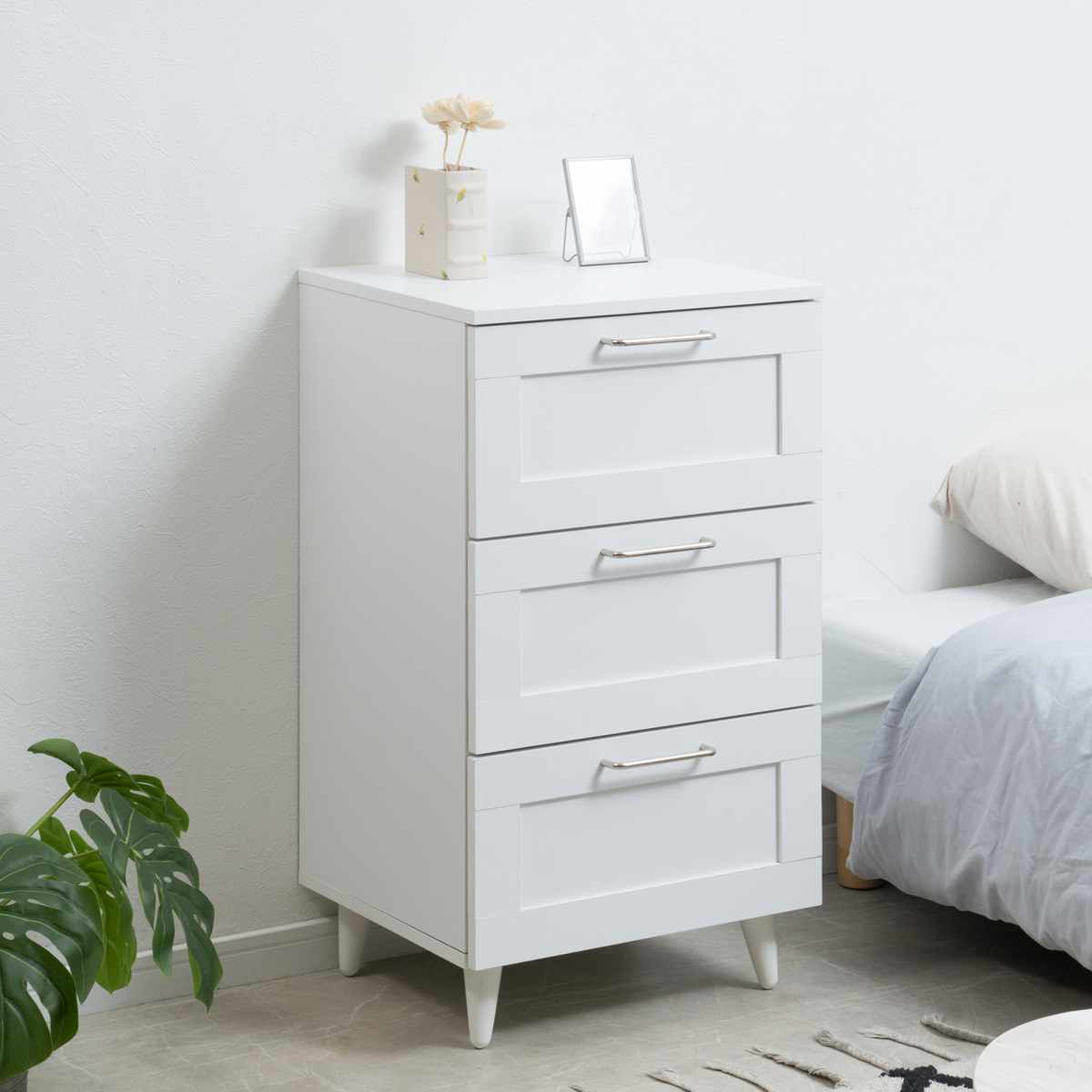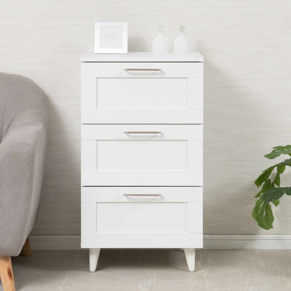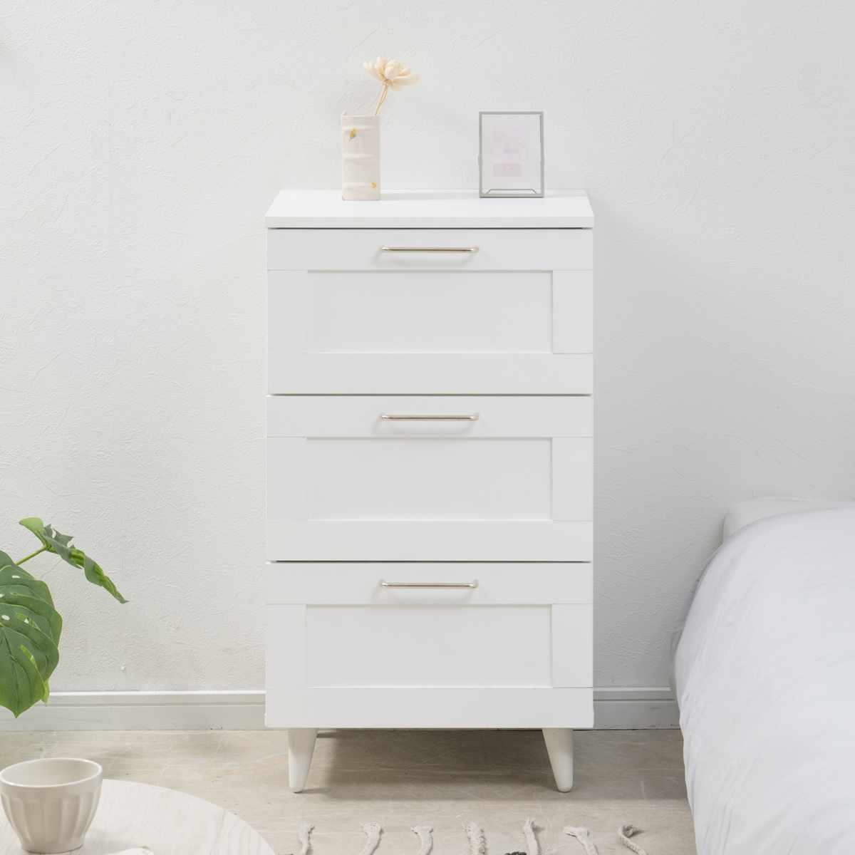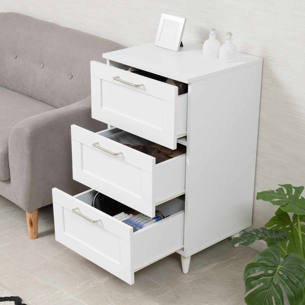 コンパクトなサイズ感ながら、3杯の引出しにしっかり収納できます。引出しは深さがあるので、厚手の衣類もきちんと収まります。リビングや寝室のサイドボードとしても使いやすいサイズです。