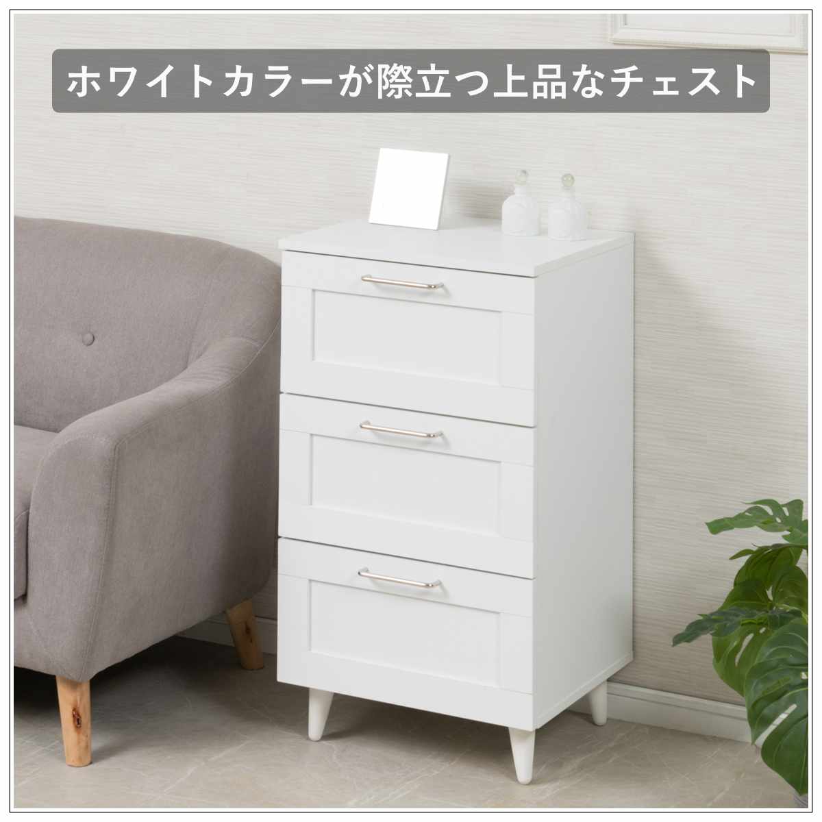 新生活や狭いお部屋でも圧迫感のない、軽やかなチェストです。白を基調とした上品で柔らかなデザインが、ナチュラルで洗練された空間を演出し、お部屋のアクセントとしても映えます。