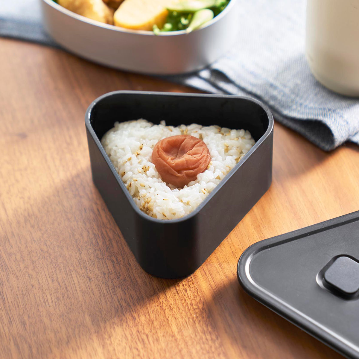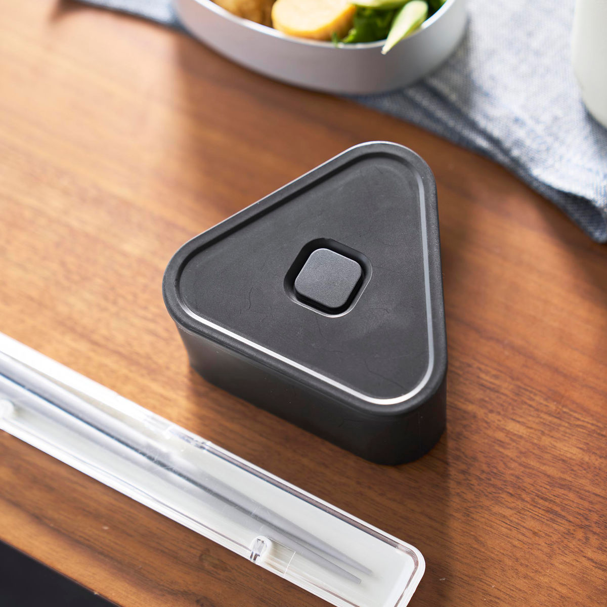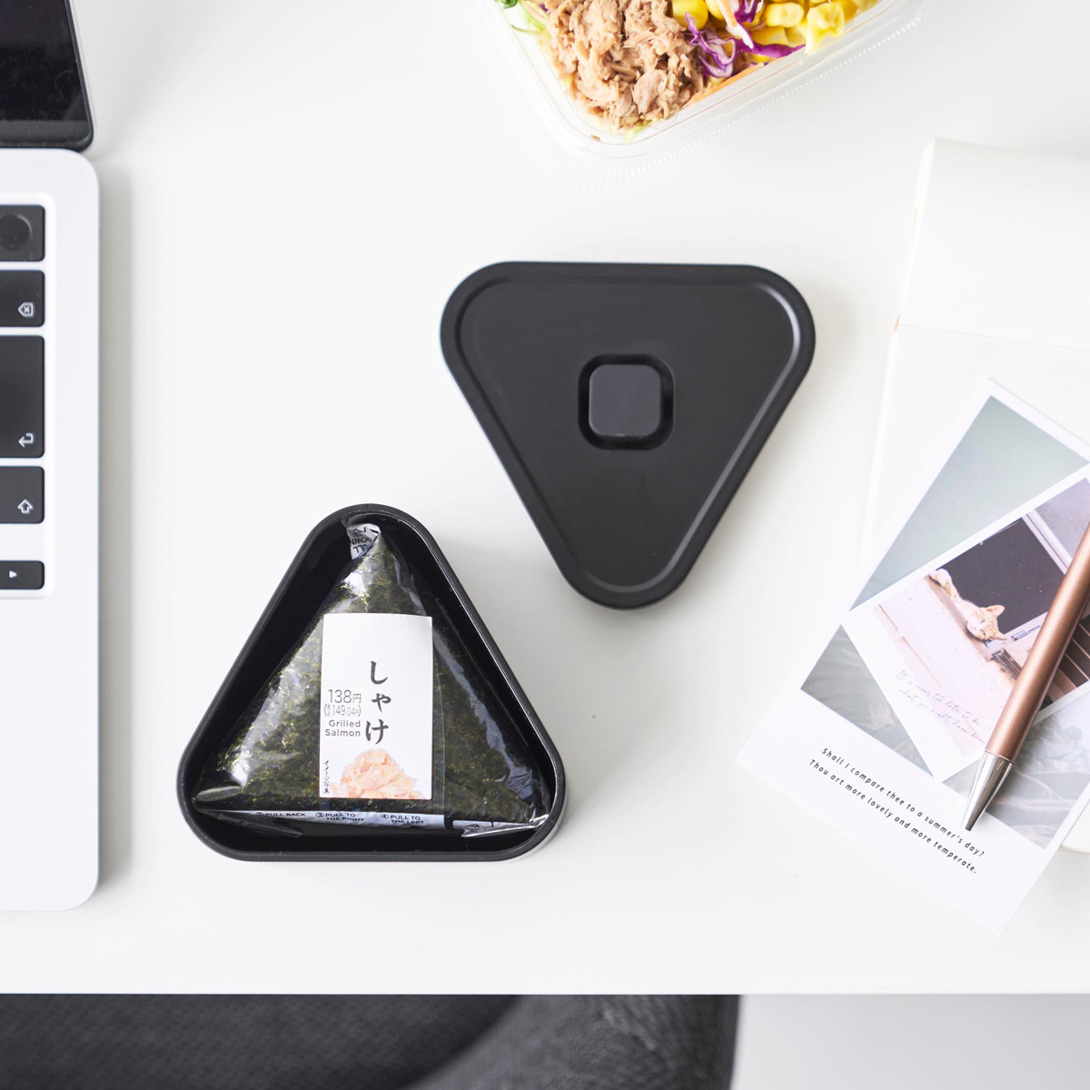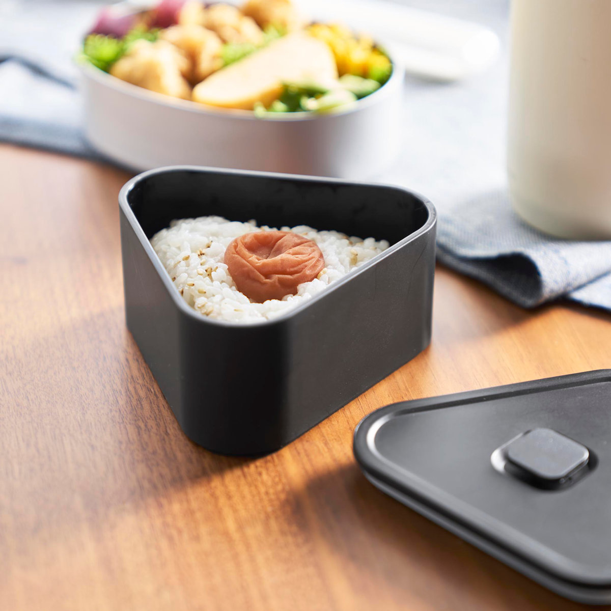 コンビニのおにぎりもきれいな形のまま収納できます。ワンプッシュでしっかり密閉でき、持ち運びも安心です。