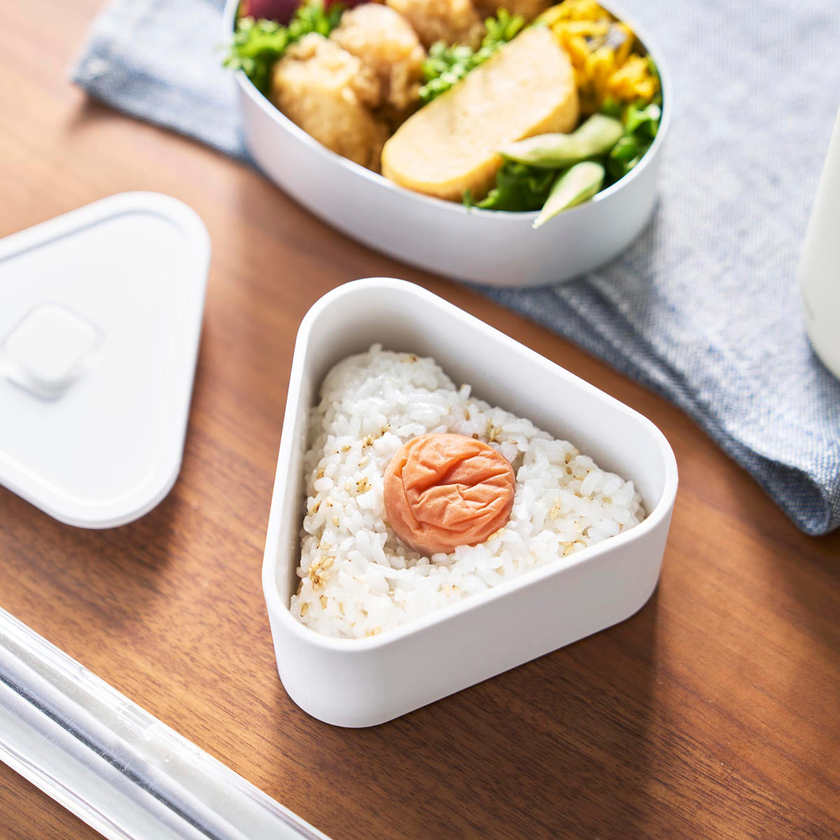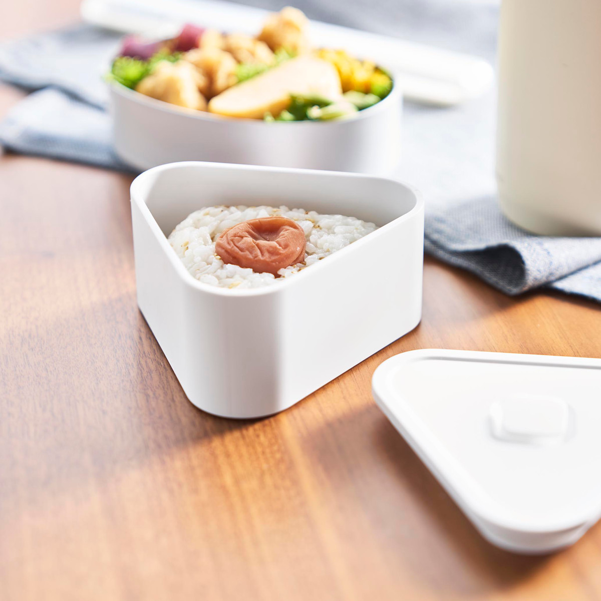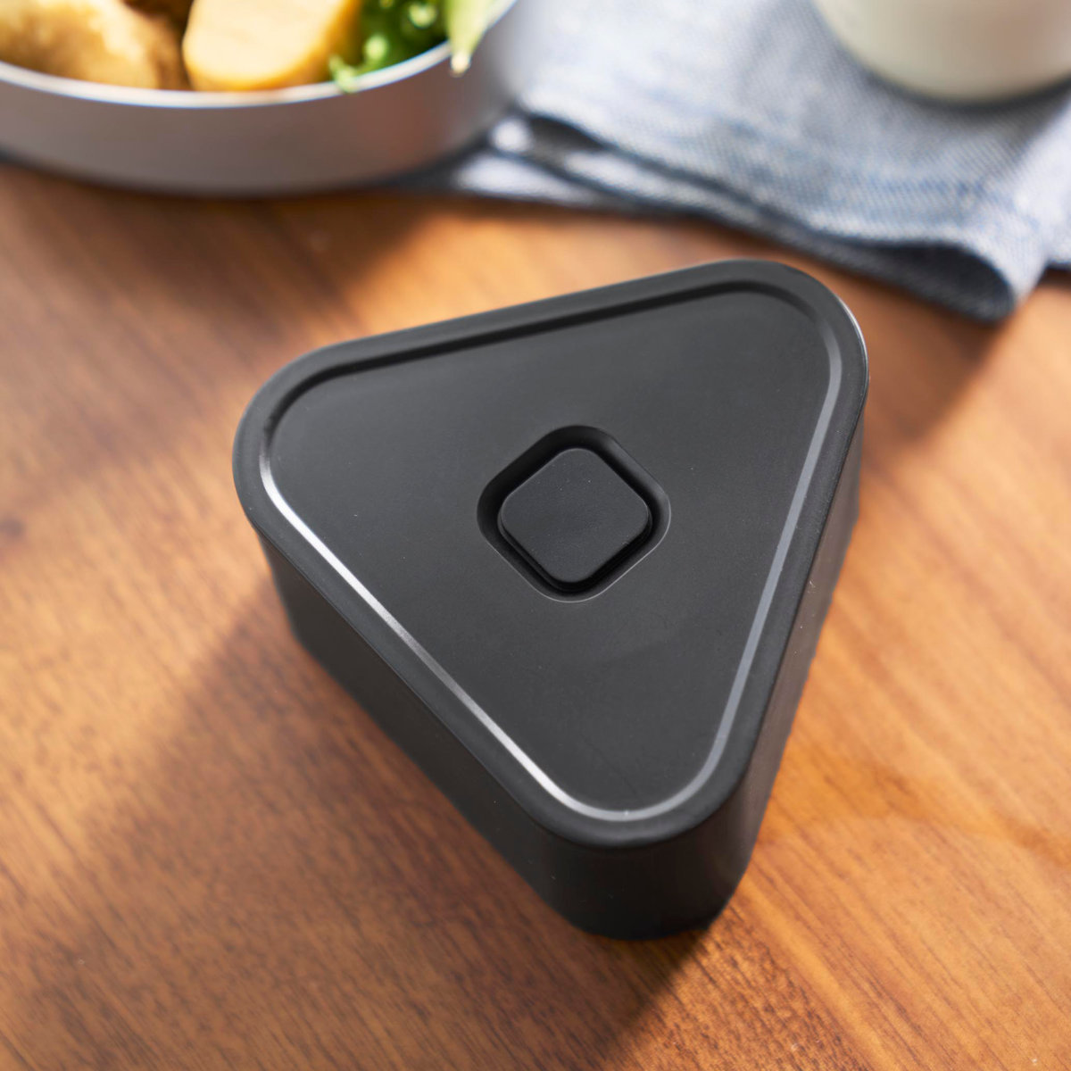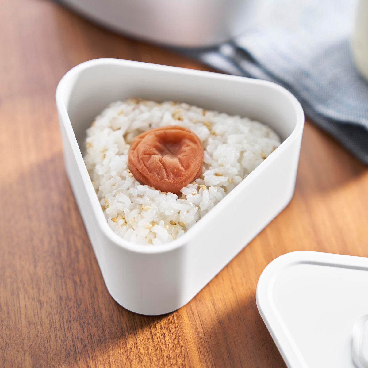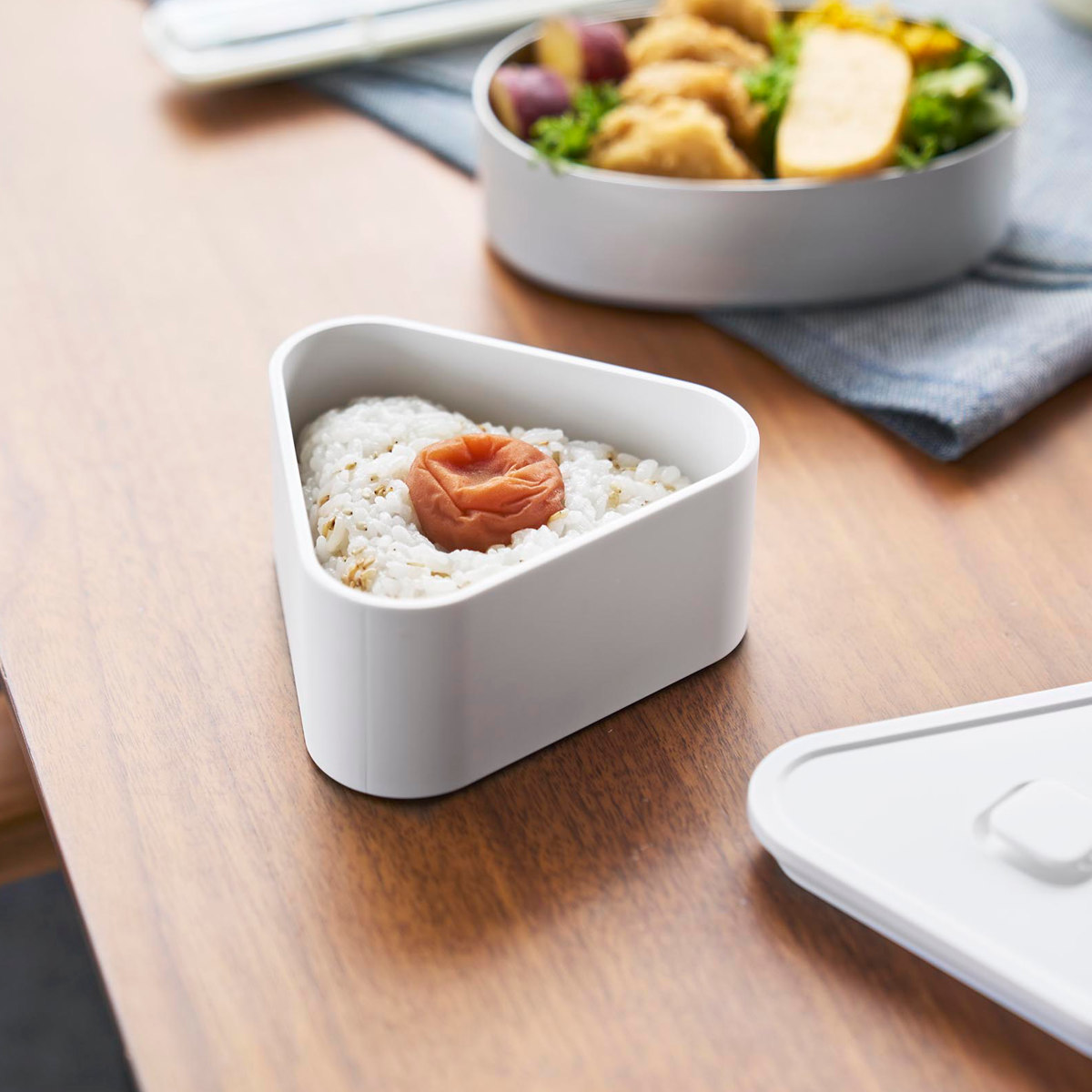 コンビニのおにぎりもきれいな形のまま収納できます。ワンプッシュでしっかり密閉でき、持ち運びも安心です。