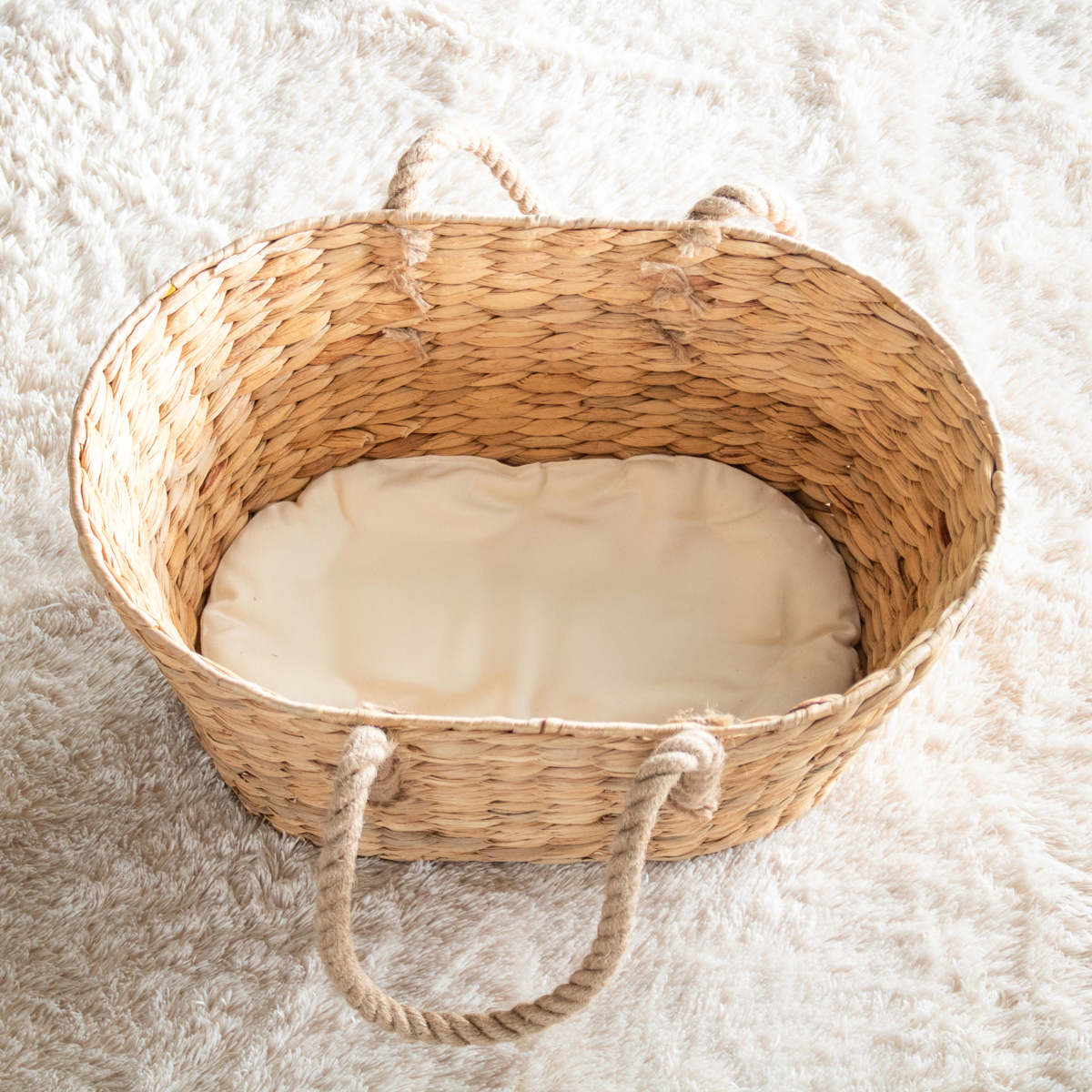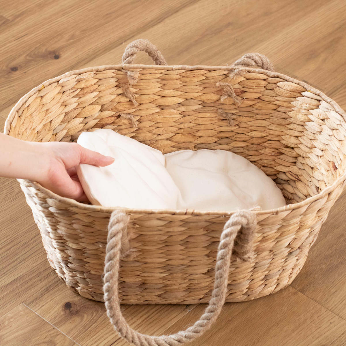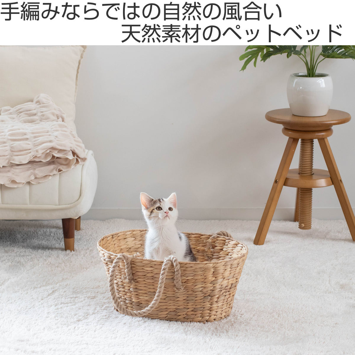 通気性に優れた天然素材ウォーターヒヤシンスを編み上げたペットベットです。やわらかな風合いでオールシーズン快適に使えます。スチールフレームを使わず、天然素材のみで仕上げた環境負荷の少ない商品です。