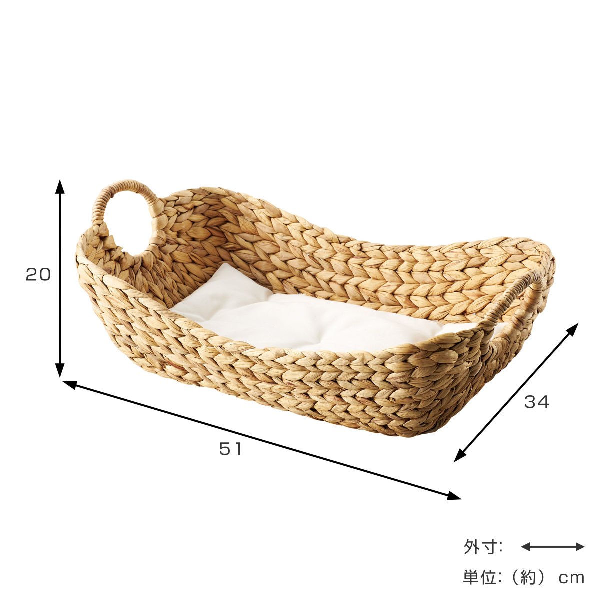 優しい風合いのペット用バスケットです。国産のクッション付きで安心してくつろげ、わんちゃんやネコちゃんが本能的に落ち着く居場所になります。ウサギなどの小動物にもお使いいただけます。