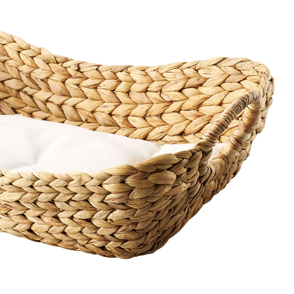 ウォーターヒヤシンスを編み込んで作られているので、夏は涼しく、冬は温かく過ごせます。通気性も良いので、臭いがこもりにくいのも嬉しいポイントです。