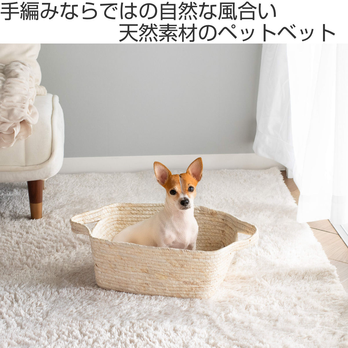 通気性に優れた天然素材メイズ(トウモロコシの皮)を編み上げたペットベットです。やわらかな風合いでオールシーズン快適に使えます。スチールフレームを使わず、天然素材のみで仕上げた環境負荷の少ない商品です。
