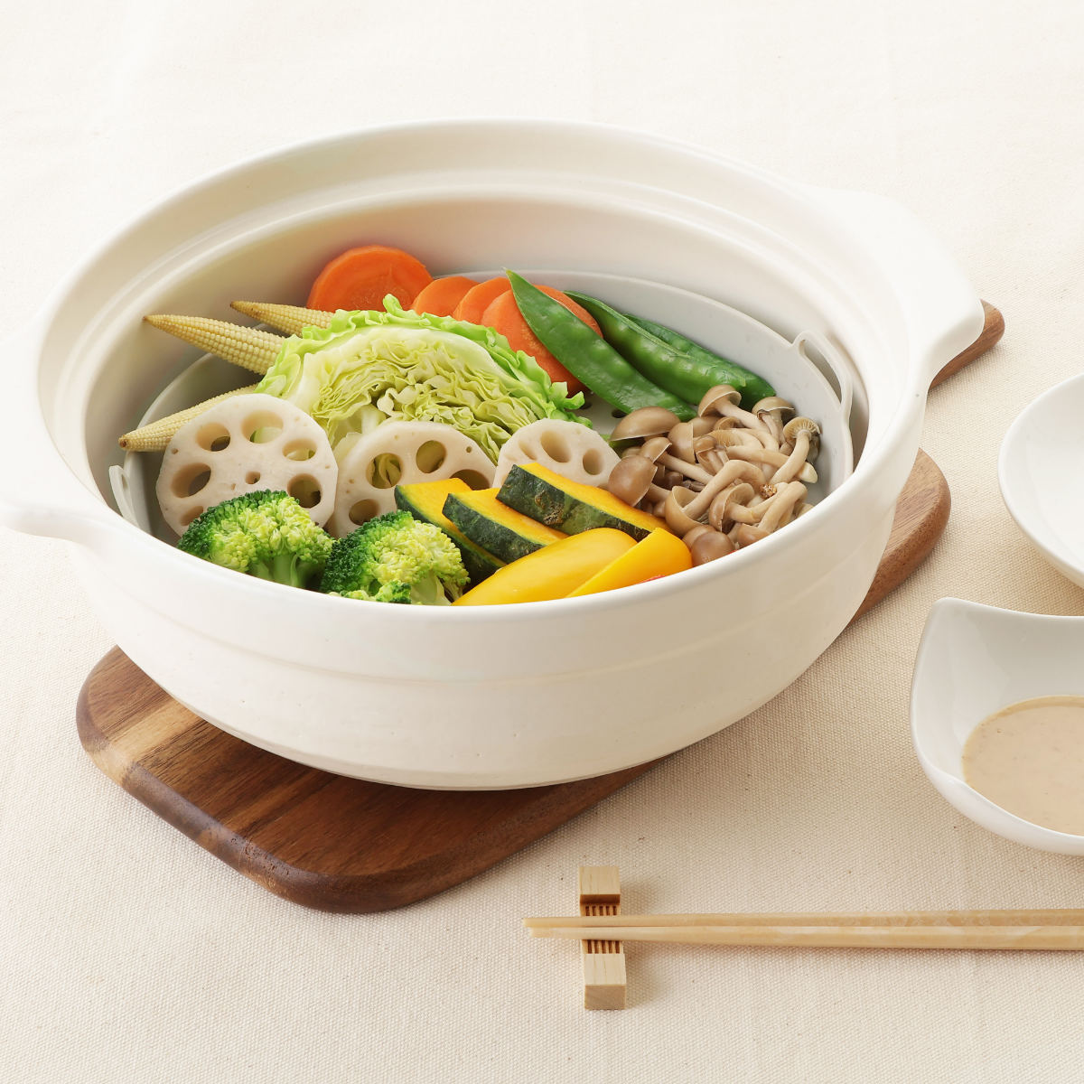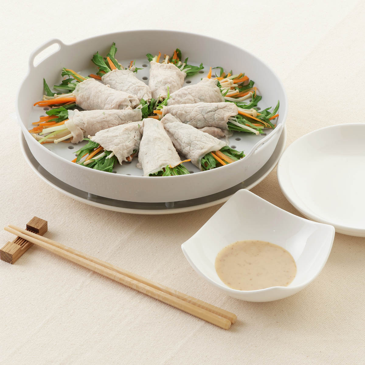 ●蒸ししゃぶや温野菜、肉まんやシュウマイの温めまで、アイデア次第でおいしく、ヘルシーに蒸し料理を楽しめます。