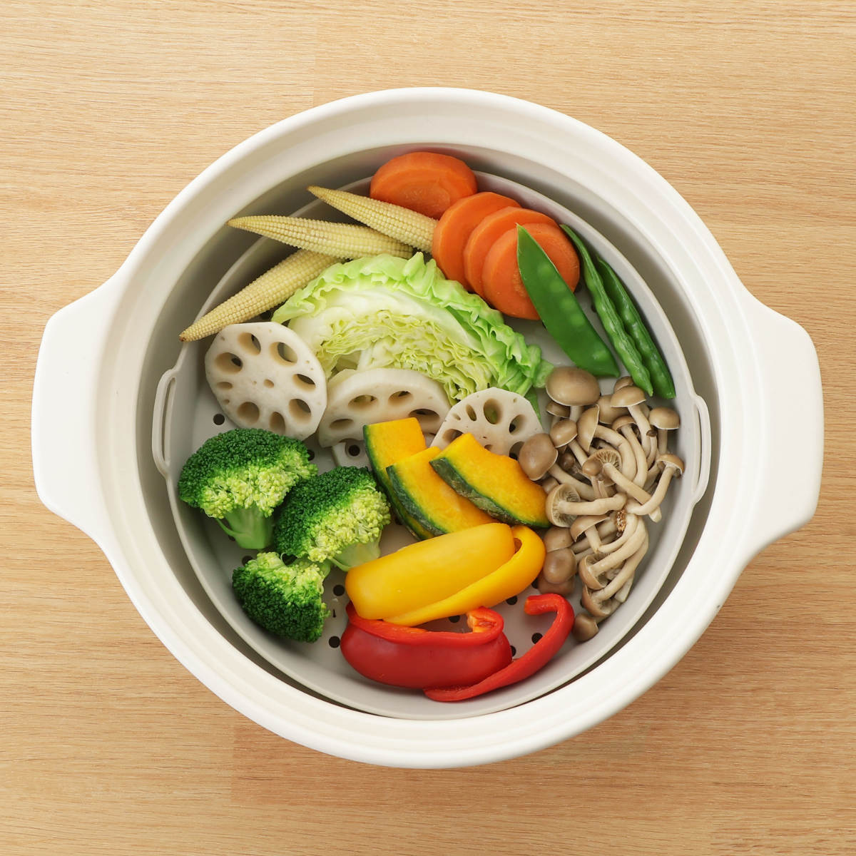 蒸し料理は水を使わないため栄養が失われにくく、食材本来のおいしさをそのまま味わえるのが魅力です。蒸ししゃぶや温野菜、肉まんやシュウマイの温めまで、アイデア次第でおいしく、ヘルシーに蒸し料理を楽しめます。